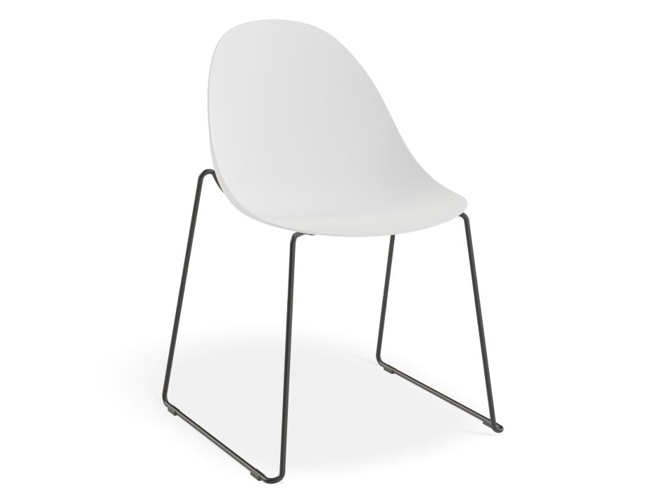 Pebble Chair White with Shell Seat - Sled Stackable Base - Black