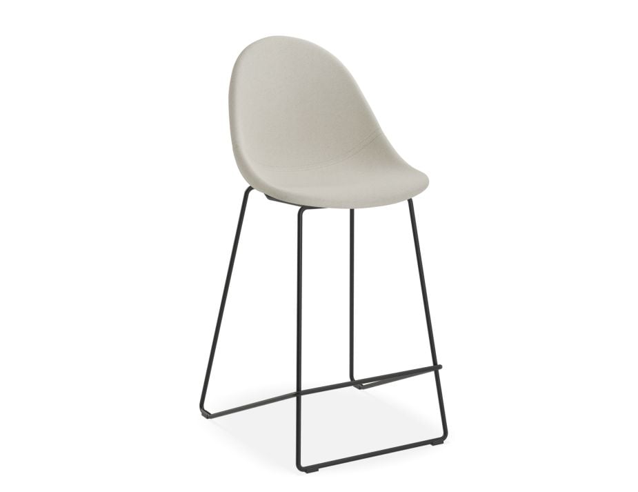Pebble Fabric Light Grey Upholstered Stool - Counter Stool 65cm Seat - White Frame