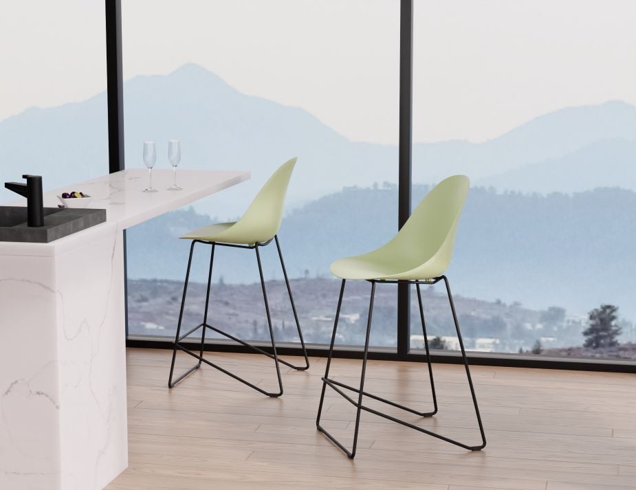 Introducing the Pebble Mint Green Stool Shell Seat, the perfect addition to any bar or cafe.