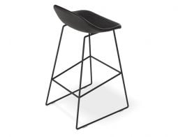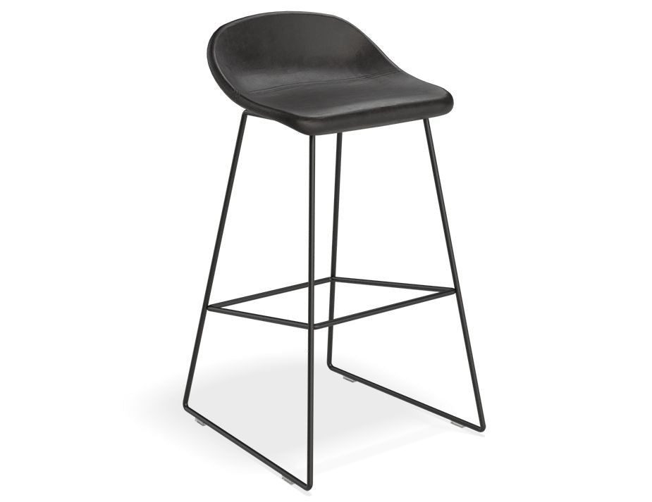Pop Stool with Black Frame and Upholstered Vintage Black Seat