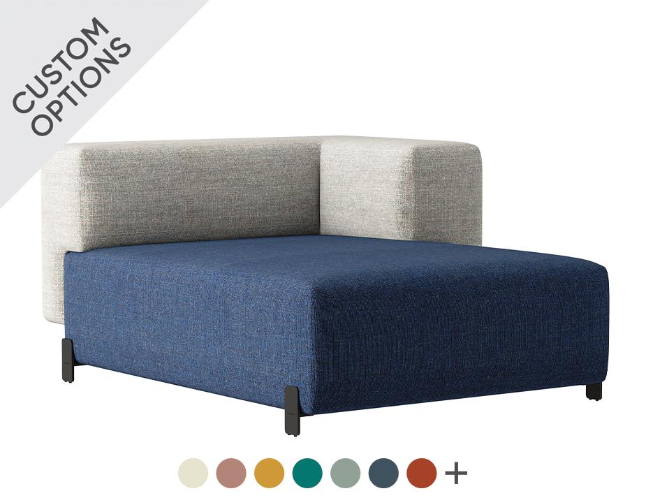 Quest Sofa Right Chaise Section - Modular extension with commercial intent The Quest Sofa Right Chaise Section introduces relaxed depth and visual balance to the modular system. Its elongated seat form extends the functional footprint of any configuration, offering flexibility for workplace lounges, client areas or public zones. With a right-arm orientation and clean-lined silhouette, this module supports adaptable seating layouts while maintaining LEVEL's focus on performance, durability and design clarity. Minimal profile with extended comfort and tailored finishes Built for commercial environments, the Quest Right Chaise features a cantilevered backrest and soft corner detailing, creating a visually lightweight yet structurally sound component. Designers can select different fabric tones for the cushion and backrest, enabling dynamic zoning, brand alignment or colour blocking across modular arrangements. Constructed with commercial-grade foam and robust internal framing, this piece offers both comfort and longevity. Modular versatility for open-plan and hybrid spaces Whether paired with center sections, corners or ottomans, the Right Chaise brings ergonomic variety and functional range to the Quest system. It's an ideal solution for office fit-outs, hotel lounges or university commons where lounge seating needs to be both inviting and purpose-driven. Available in a curated selection of in-stock fabrics with responsive lead times, the Quest Sofa Right Chaise Section delivers modular flexibility with confident execution.
