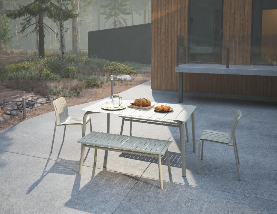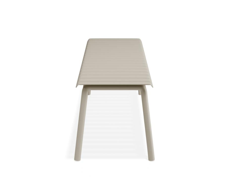 Roku Small 120cm Outdoor Bench Seat in Latte Aluminium The Roku Bench 120cm - Outdoor in Latte is a compact, clean-lined solution for integrated outdoor seating across commercial, hospitality, and public environments. Designed with restrained geometry and high-performance materiality, this small outdoor bench supports layout flexibility in projects where durability, clarity, and spatial efficiency are key. Lightweight, stackable, and corrosion-resistant, it meets the evolving needs of design professionals specifying for the Australian outdoors. Aluminium Outdoor Bench Seat in Latte Finish The Roku Bench is constructed from aluminium and finished in a durable Latte powder coat, selected for its resistance to moisture, rust, and environmental wear. The slatted top profile promotes drainage while maintaining a clean, architectural presence. As a metal outdoor bench designed for all-weather use, it's suited to garden zones, hospitality terraces, public domains, and private multi-residential developments. Outdoor Benches Australia: Aluminium Built, Design Led At 120cm, this small bench seat offers a modest footprint ideal for tighter spatial layouts, small courtyards, or compact garden placements. Its backless form allows for dual-sided access and multi-directional integration into both formal and casual seating zones. Lightweight and easy to move, it is available for volume orders with consistent supply, making it a reliable component in commercial outdoor furniture planning.