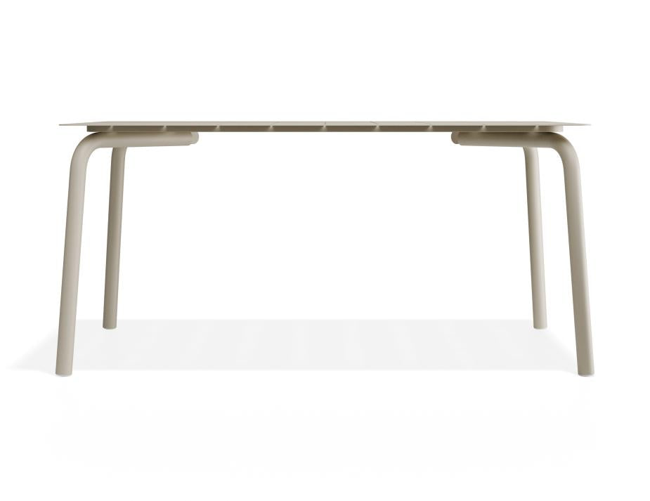 Roku 6 Seater Aluminium Outdoor Dining Table for Commercial Use The Roku Dining Table 160cm - Outdoor in Latte offers a refined, metal-framed solution for alfresco dining in commercial and high-traffic outdoor settings. With clean edges, soft-rounded legs and a weather-resistant powder-coated aluminium surface, this 6-seater outdoor dining table is designed to integrate into hospitality fitouts, landscape zones, and residential-style public environments where reliability and clean detailing matter. Weatherproof Metal Dining Table with Slatted Top Built entirely from aluminium and finished in Latte powder coat, the Roku Dining Table offers corrosion resistance and minimal upkeep in exposed conditions. The tabletop includes subtle channels for water runoff, while the rounded leg detail contributes to a cohesive outdoor language across the Roku range. Lightweight yet structurally sound, this aluminium outdoor dining table is suitable for cafes, patios, terraces, and public-use installations requiring consistent quality and weather durability. Metal Outdoor Table with Matching Seating Options Measuring 160cm in length, the Roku Dining Table comfortably seats six, aligning with common layout requirements for food and beverage or communal spaces. Its neutral, design-led profile integrates well with the Roku chair and bench collection, allowing for consistent specification across a project. Lightweight, flat-pack capable, and available for volume orders, it meets the practical needs of architects, designers, and commercial planners.