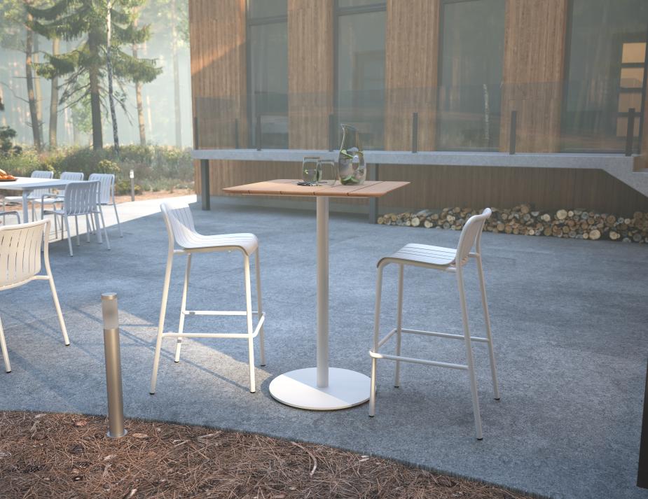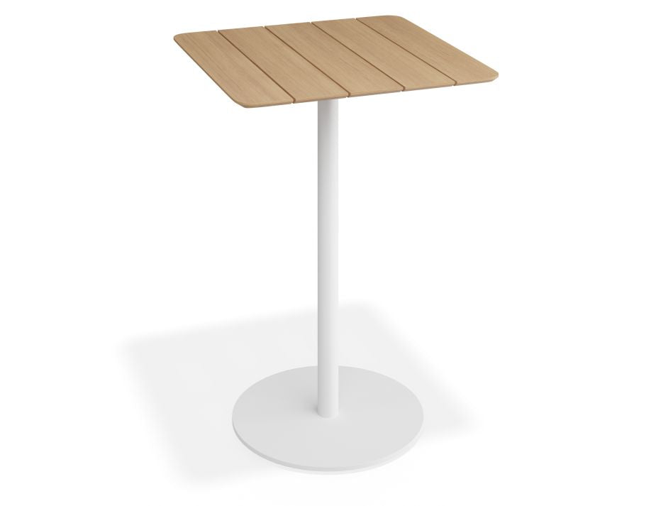 Roku High Bar White Table: The Perfect Fusion of Teak and Modern Design Transform your outdoor commercial space with the sleek and versatile Roku High Bar Teak Table in Matte White. Perfectly suited for modern cafés, bars, and rooftop terraces, this high bar table by Bent Design Studio is a stunning fusion of natural teak and contemporary design. Its bright matte white frame offers a fresh, clean aesthetic that complements the warmth of the teak tabletop, making it an eye-catching piece for any outdoor setting. Built for High-Traffic Areas: The Roku High Bar Teak Table's Durable Design Constructed with a powder-coated aluminium frame in a chic matte white finish, the Roku High Bar Teak Table is built to endure the elements while retaining its elegant appearance. The natural teak top adds a touch of warmth and durability, ensuring it stands up to daily wear in bustling commercial environments. With adjustable nylon glides, the aluminium table remains stable even on uneven surfaces, offering both beauty and functionality in any setting. Key Features of the Roku High Bar Table for Busy Commercial Areas Available in Two Sizes: Choose from 65x65 cm or 75x75 cm tabletops to fit your space. Weather-Resistant: The teak and powder-coated aluminium frame is designed to withstand outdoor conditions, making this white table ideal for patios, bars, and outdoor dining areas. Stylish Matte White Finish: The crisp white frame paired with the natural teak top creates a modern, minimalist look. Durable and Low Maintenance: Perfect for high-traffic areas, this white table is designed to last with minimal upkeep. Adjustable Nylon Glides: Ensure stability on uneven surfaces, perfect for outdoor patios and terraces. Height: 105 cm, designed for comfortable high-bar seating arrangements. Easy Assembly: Requires basic assembly, making it quick and efficient to set up.