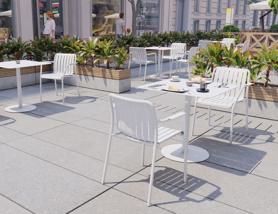 The Roku Outdoor Armchair is a high-quality piece of furniture designed specifically for commercial projects. With its sleek and modern design, this armchair is sure to make a statement in any outdoor space. The 44cm seat height and 66cm armrest height ensure that it is both comfortable and practical for guests. With a frame constructed from matte white powder-coated aluminum, the armchair is durable and long-lasting. It is also lightweight, with a weight of approximately 4.5kg, making it easy to move and rearrange. This armchair is part of the Roku Outdoor collection, meaning that it is designed to work seamlessly with other pieces in the range. The designer, Bent Design Studio, has ensured that the armchair is stylish, yet functional, and that it will stand the test of time. With nylon slides to protect the feet, you can rest assured that the armchair will stay in place, even on slippery surfaces. Assembly is not required, making it a convenient and hassle-free solution for commercial project managers, interior designers, and furniture outfitters. With its overall size of 55.5cm W x 80cm H x 52.5cm D, this armchair is a great option for outdoor areas such as patios, balconies, and garden spaces.