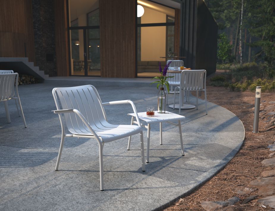 Introducing the Roku Outdoor Lounge Chair by Bent Design Studio, the perfect addition to any outdoor commercial space. This lounge chair is designed to provide both comfort and style, with a seat height of 41.5cm and armrest height of 60.5cm. The overall size of the chair is 70cm W x 74cm H x 63.5cm D, making it a spacious and comfortable option for your customers. The frame of the Roku Outdoor Lounge Chair is constructed from high-quality, powder-coated aluminum in a sleek Matt White finish, ensuring it is both durable and weather-resistant. To further enhance the longevity of this outdoor lounge chair, it features nylon slides as a foot protector. Weighing only ~5.5Kg, the Roku Outdoor Lounge Chair is lightweight and easy to move, making it ideal for outdoor areas that need to be rearranged from time to time. With no assembly required, the Roku Outdoor Lounge Chair is ready to use right out of the box and is a perfect addition to the outdoor Roku furniture range.