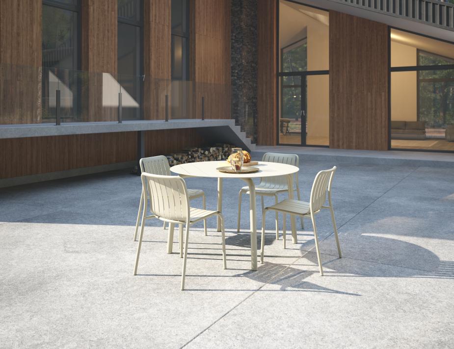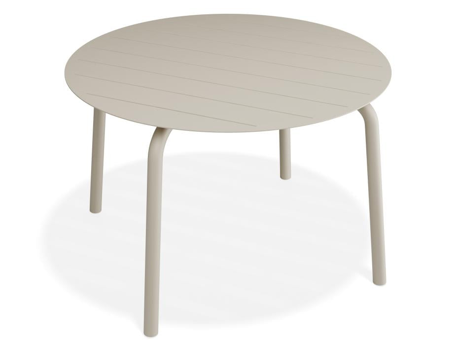 Round Outdoor Aluminium Dining Table for Cafes and Courtyards The Roku Round Dining Table 120cm - Outdoor in Latte introduces a softer, more conversational format to the Roku collection. Built from powder-coated aluminium with clean lines and durable weather performance, this 4 seater outdoor dining table is ideal for hospitality, courtyard, and communal applications. Its circular footprint promotes social interaction while maximising space efficiency for smaller outdoor layouts and commercial dining zones. Metal Outdoor Dining Table with Rust-Resistant Finish Engineered for longevity, the Roku Round Table features a full aluminium build with a Latte powder-coated finish, designed to withstand rain, sun, and environmental exposure. The tabletop includes subtle slatted detailing to support water runoff. Lightweight yet stable, it's a low-maintenance solution for outdoor dining areas requiring durable, high-performing furniture with consistent finish options across a project palette. Small Outdoor Dining Table for Commercial Fitouts With its 120cm diameter, the Roku Round Dining Table seats four comfortably and supports compact site layouts in cafes, boutique hospitality venues, and shared garden environments. Its circular form allows for fluid traffic flow and encourages relaxed interaction, while its clean-lined construction aligns with the broader Roku outdoor furniture range for consistent project-wide specification.
