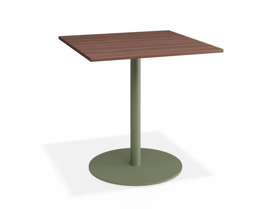 Infuse Colour and Style with the Roku Spotted Gum Cafe Table in Matte Green for High-Traffic Areas Bring a pop of colour and refined style to your hospitality settings with the Roku Spotted Gum Cafe Table in matte green. Designed by Bent Design Studio, this wooden table pairs a natural spotted gum top with a durable powder-coated aluminium base, perfect for adding a modern yet organic feel to outdoor cafes, restaurants, and lounges. Built to endure high-traffic environments, the Roku Cafe Table combines eye-catching design with commercial-grade durability. Perfect for Indoor and Outdoor Use: A Stylish Matte Green Base and Natural Wood Top The Roku Spotted Gum Cafe Table is crafted to meet the unique needs of commercial spaces. The natural wood top introduces warmth and texture, while the matte green base adds a fresh, contemporary touch that works well in both indoor and outdoor settings. With adjustable nylon glides, this square outdoor table remains stable on various surfaces, making it a reliable and stylish choice for professional spaces. Green Cafe Table that Stands Out in Hospitality Spaces Customisable Sizes: Available in four sizes - 56.5cm, 66cm, 75.5cm, and 85cm tops - to fit diverse layouts and seating configurations. Natural Spotted Gum Top: Beautiful wood grain patterns add a distinctive, upscale look, creating an inviting atmosphere. Weather-Resistant Matte Green Frame: Powder-coated aluminium base offers durability and a unique visual appeal, ideal for outdoor applications. Bent Design Studio Innovation: Blends modern aesthetics with practical features, crafted for commercial environments. Adjustable Nylon Foot Glides: Provide stability on uneven surfaces, ensuring a comfortable dining experience for guests.