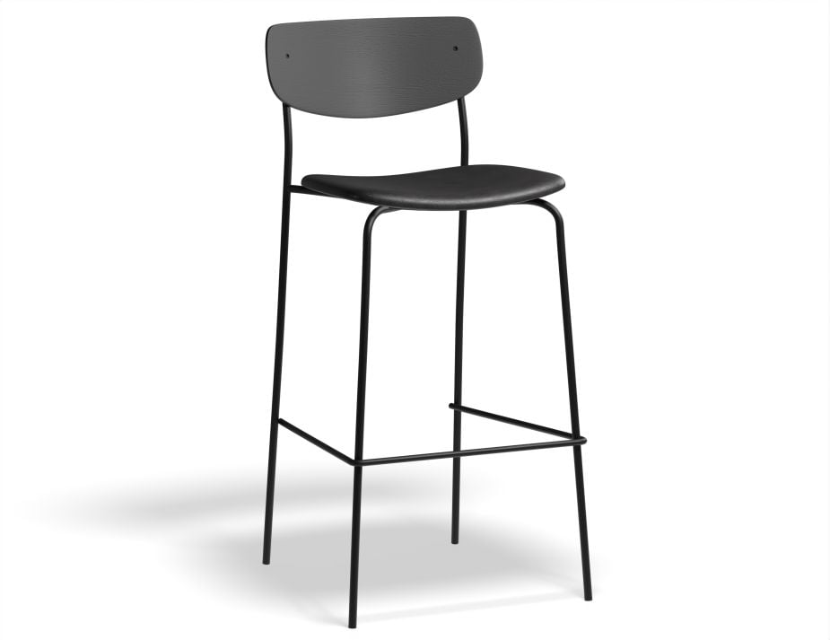 Rylie Stool - Padded Seat with Black Backrest - 75cm Bar Height - Black Vegan Leather Seat