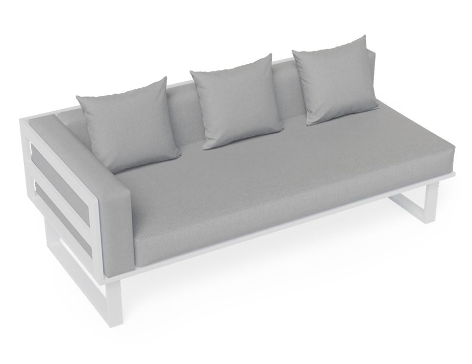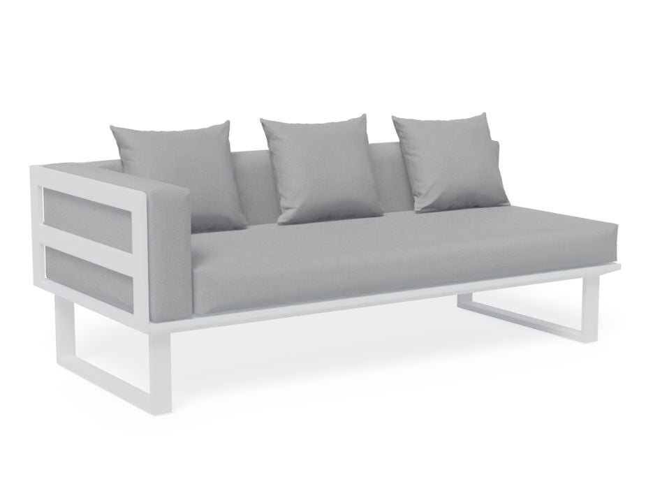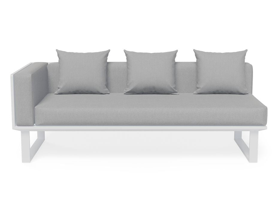 As a commercial project manager or outfitter company, you understand the importance of high-quality and functional furniture in a commercial setting. The Vivara Sofa with a left arm from Bent Design Studio is a perfect fit for your next outdoor commercial project. With its dimensions of 85cm in width, 186cm in length, and 85cm in depth, this sofa is both spacious and comfortable, making it ideal for outdoor areas such as hotel patios, bar terraces, and resort lounge areas. The Vivara Sofa is constructed with a powder-coated aluminum frame, providing strength and durability for long-term use. The seat cushions, made from polyester texteline outdoor fabric, are available in a light grey color that is both stylish and low maintenance. Additionally, with its seat height of 43cm, back cushion height of 26cm, and internal seat depth of 68cm, this sofa offers exceptional comfort for all your guests. The set also includes three scatter cushions for additional comfort, making this sofa the perfect choice for outdoor commercial spaces.