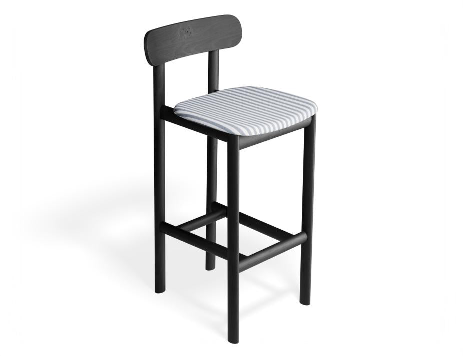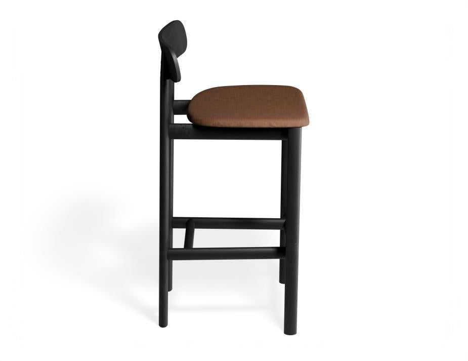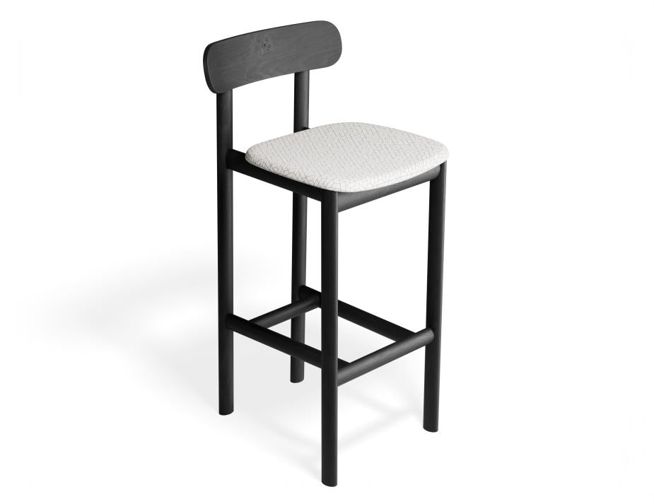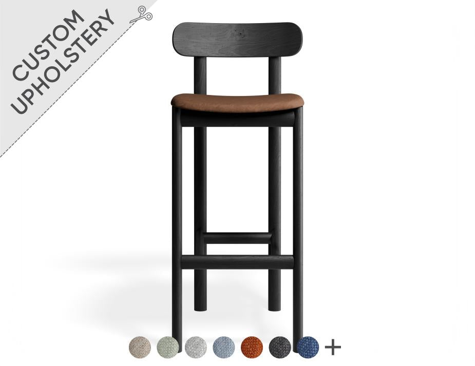 Design clarity: Zara Bar Stool in Black with Custom Upholstery The Zara Bar Stool in Black with Custom Upholstery is a versatile, design-focused seating solution tailored to commercial and residential interiors requiring consistent finishes and flexible material palettes. With its solid timber structure and customisable fabric seat, this upholstered black bar stool brings comfort, functionality, and long-term value to modern kitchens and Melbourne-based fitouts alike. Black timber frame with custom Warwick fabric seat Built from solid European ash and finished in matte black, this stool features a contoured backrest and supportive footrest, paired with a fully upholstered seat specified from nine Warwick fabric ranges: Balmain, Buckley, Copeland, Eastwood, Elton, Felix, La Casa Leather, Lustrell Aura, and Lustrell Charisma. Browse our fabric example PDFs below or share the fabric details chosen by your client. Rest assured, the chair will be expertly upholstered locally in Melbourne to the highest standards.