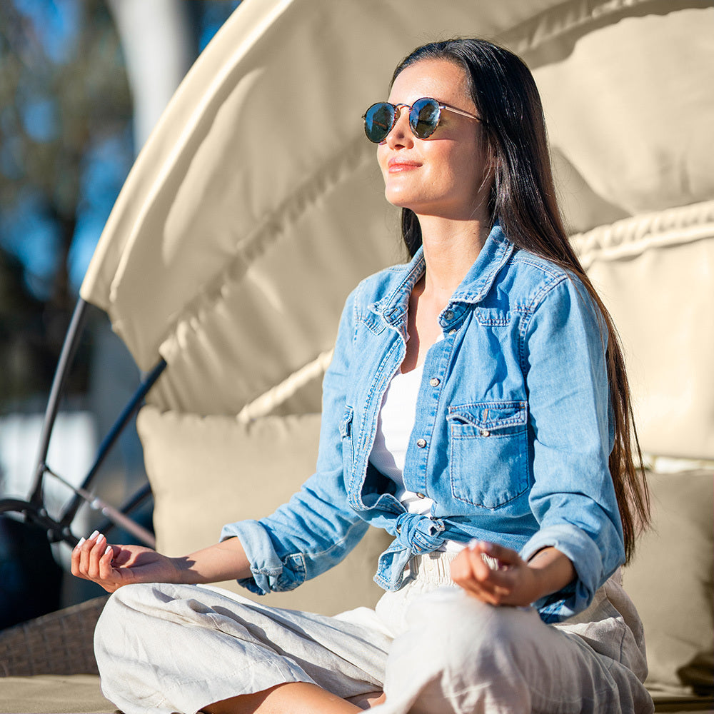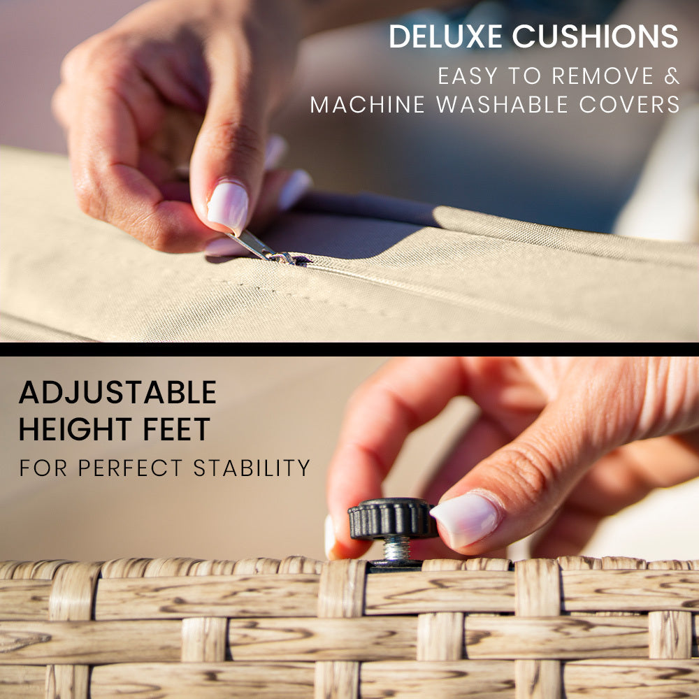 LONDON RATTAN 3pc Day Bed Round Lounge Outdoor Furniture, Beige Wicker and Canopy is the perfect addition to any outdoor area. This premium piece of outdoor furniture is designed to provide utmost comfort and stand the test of time. The day bed comes with a retractable roof canopy, four throw pillows, and adjustable feet for stability and comfort. The hand-woven SunTech resin wicker is UV stabilised and up to 40% thicker than most others, ensuring it will continue to look as good as the day you bought it for many years to come. The 3 piece set can be separated to seat up to 4 adults.