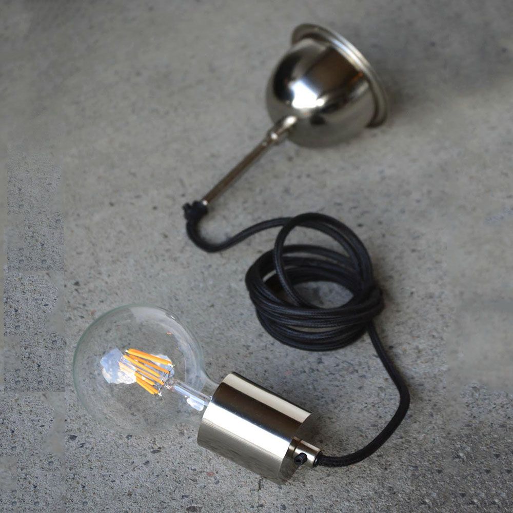 Introducing the Michigan - Nickel - Contemporary Tube Cord Drop Pendant Light, a sleek and modern addition to any home. This pendant light features a fabric covered cord and comes with a ceiling fixture for easy installation.