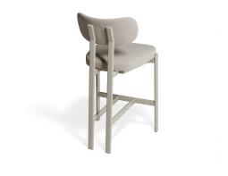 Built to commercial standards, Nova features a robust grey powder-coated frame with an elevated seat height suitable for kitchen counters and bar settings. The padded seat and contoured backrest are upholstered in soft shell fabric, bringing texture and tone to neutral design palettes. Its distinctive leg profile includes integrated footrests for added stability and comfort, supporting prolonged seated use in collaborative spaces.