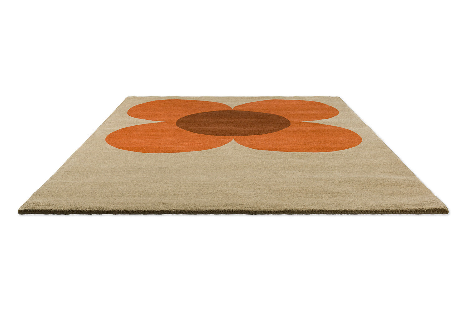 Orla Kiely 'Flower Placement' is a statement floral rug in pumpkin, brown, and beige that channels mid-century optimism while grounding the room with warm neutrals. Handtufted in India from 100% pure new wool with a 17 mm pile for cushioned comfort this rug offers durability everyday wear.
