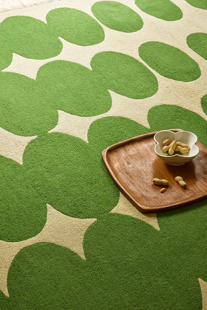 This retro optical oval pattern rug by Orla Kiely has green and cream tones that inject warmth and character without overpowering. Handtufted in India from 100% pure new wool, these rugs feature a 17mm pile for cushioned comfort.