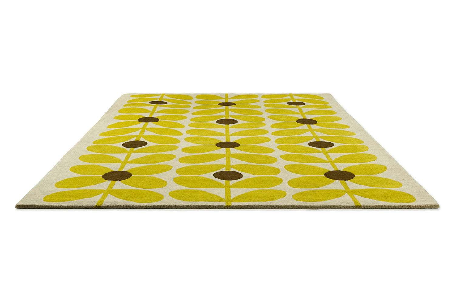An uplifting reissue of the iconic Sixties Stem, this Orla Kiely rug pairs bright yellow with crisp white for a sunny focal point, suitable for any space. Handtufted in India from 100% pure new wool, these rugs have a tactile 17 mm pile that adds comfort and acoustic warmth.