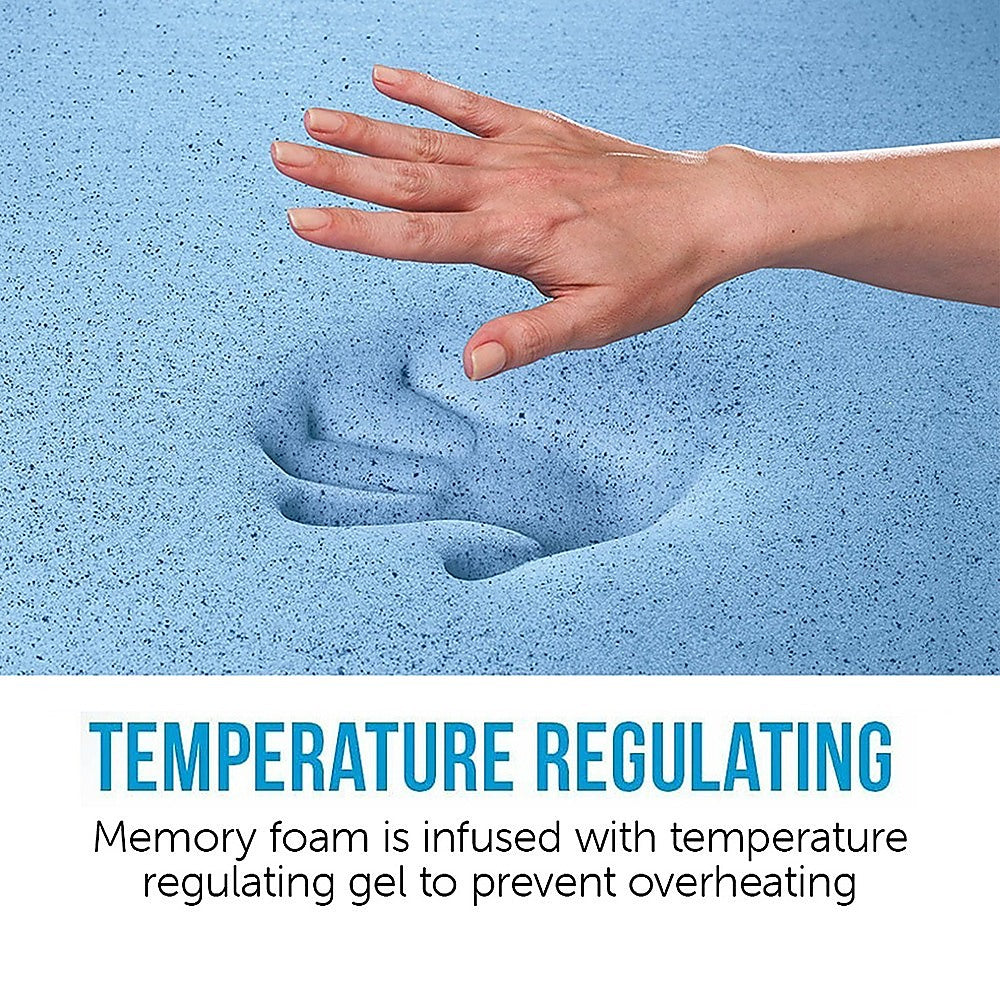 Gel infused memory foam regulates temperature while conforming to the body to ease pressure points
