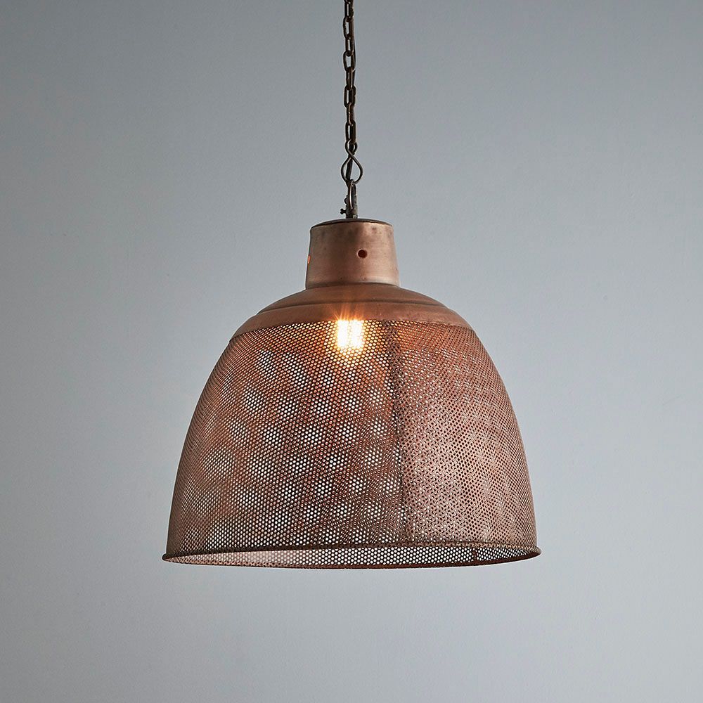 Riva Medium - Antique Copper - Perforated Iron Dome Pendant Light