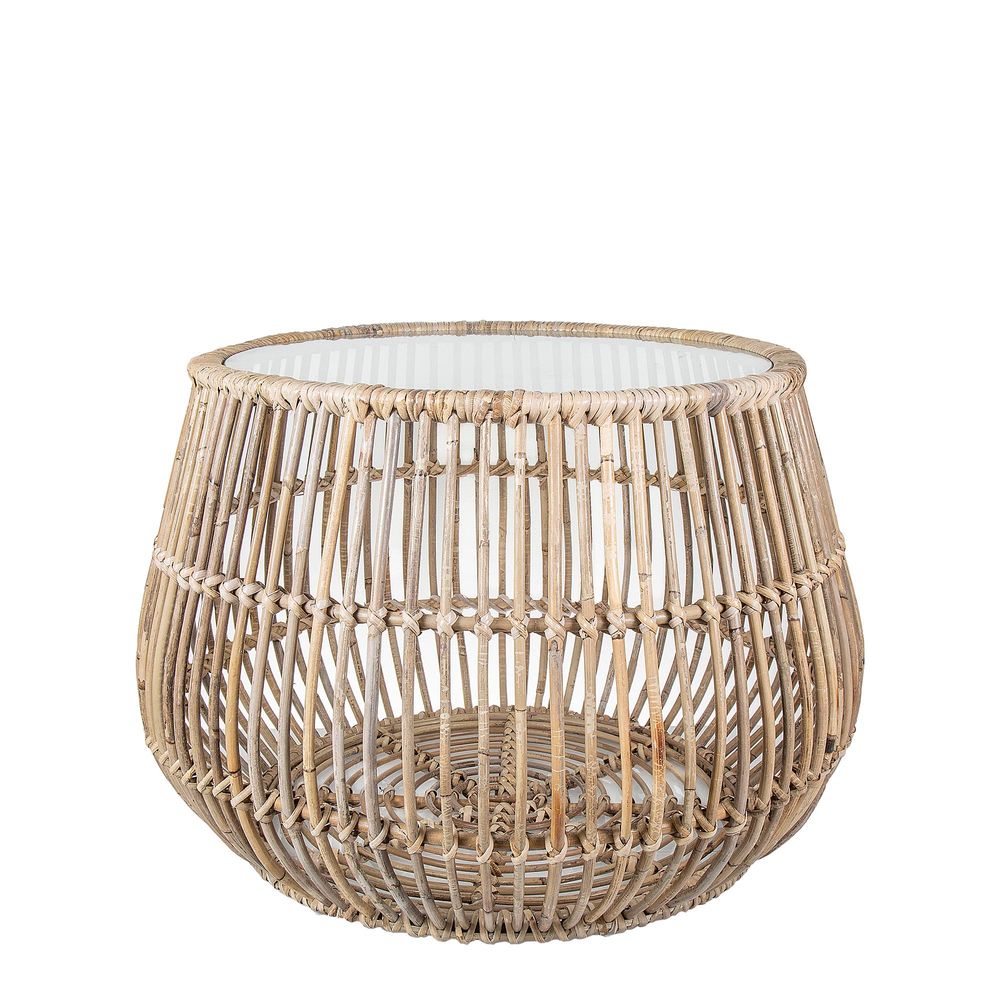 Introducing our Haiti Round Basket Table Glass, the perfect addition to your home decor. Made from high-quality rattan, this table features intricate vertical grids that not only add style but also provide structural stability. Whether you're relaxing in your Hampton's retreat or creating a coastal-inspired theme, this table is the perfect surface for drinks, books, and conversations. With its warm and luxurious feel, it's sure to elevate the look of any room.
