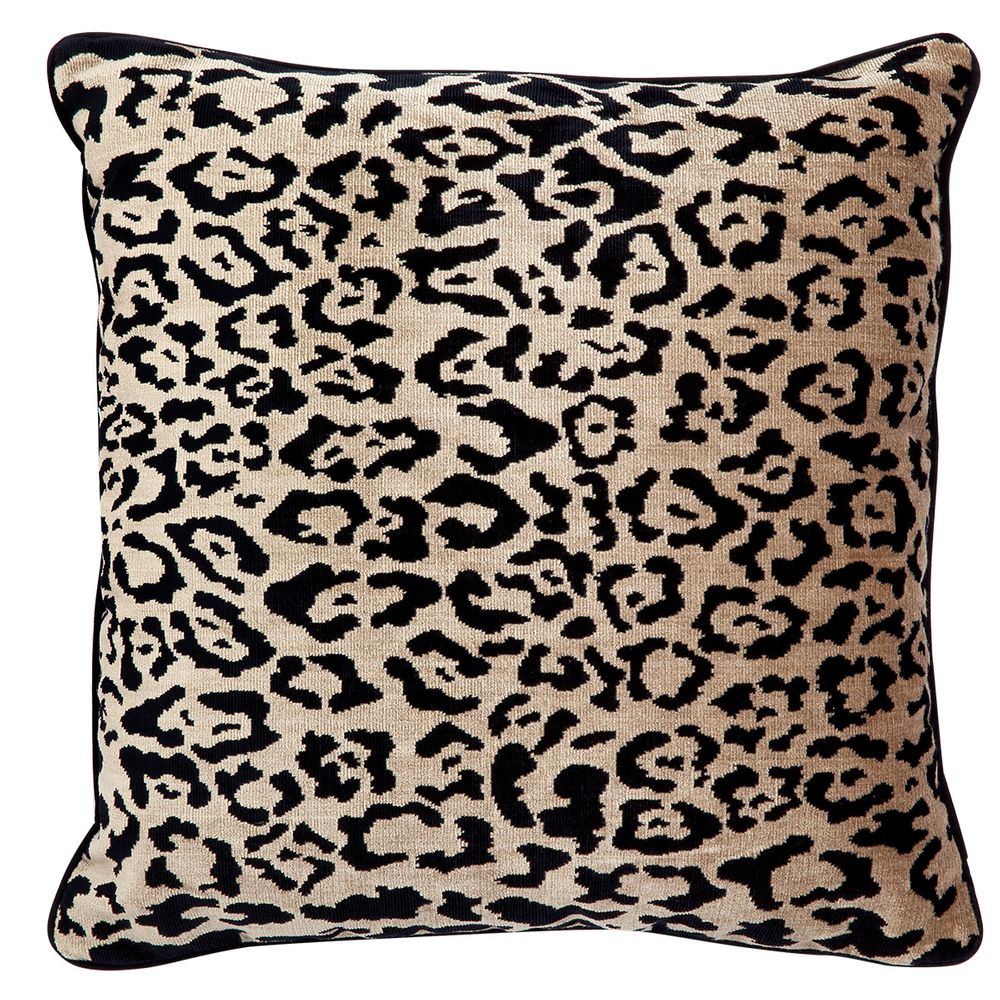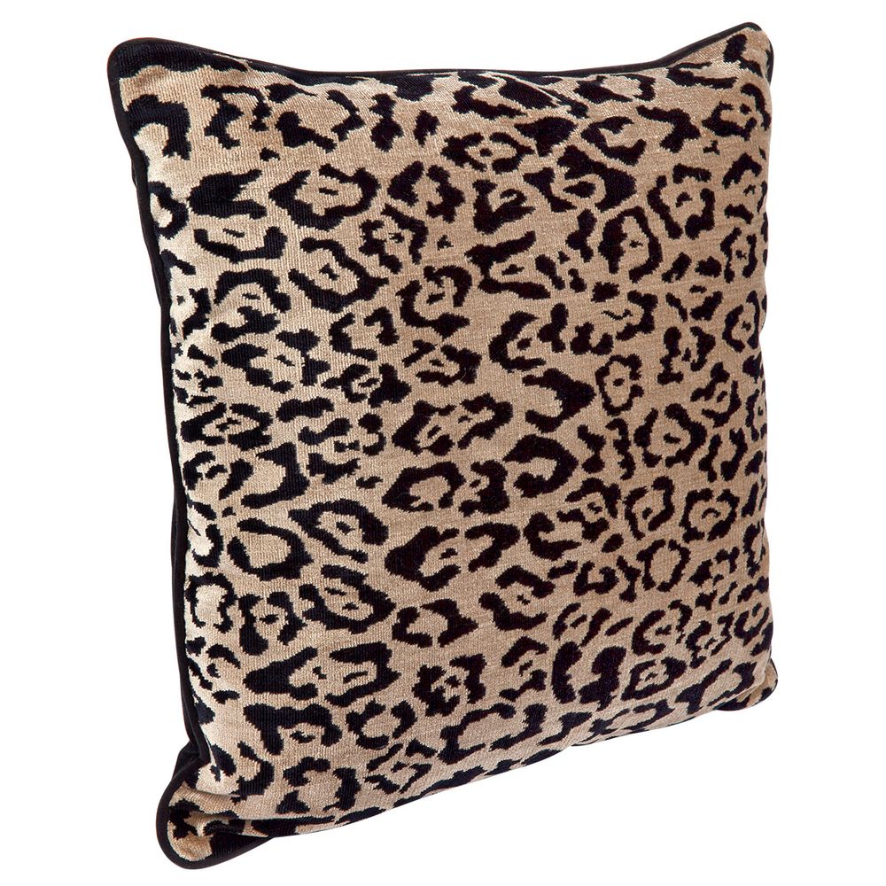 Serene Square Feather Cushion - Leopard Chenille w Black Velvet