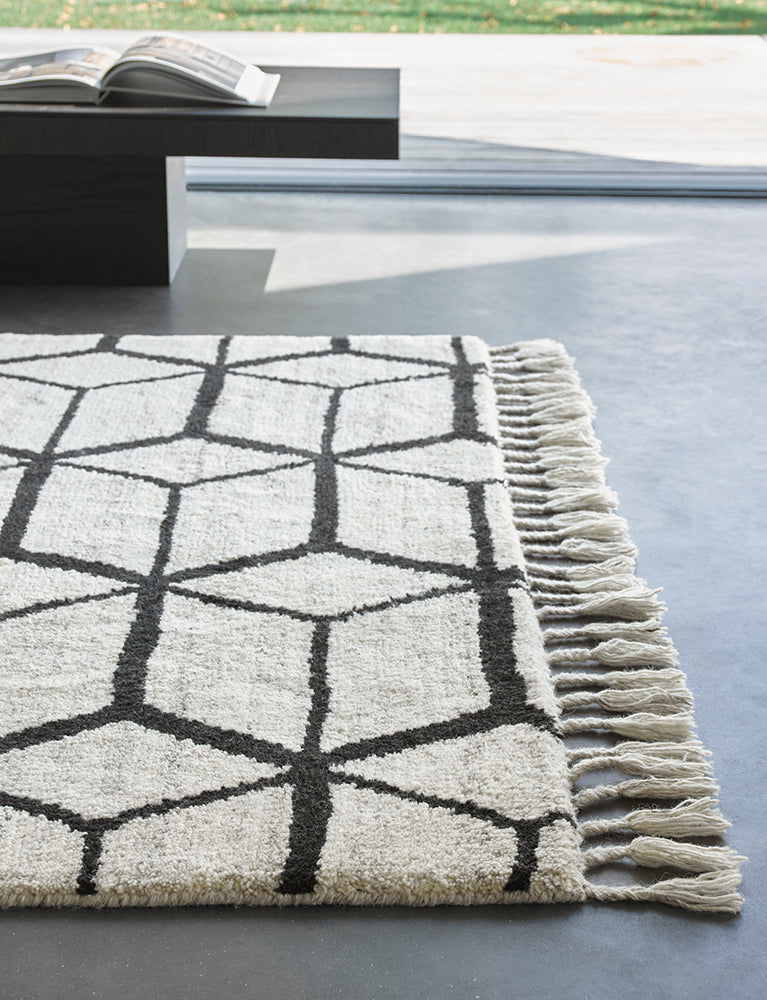Hand knotted in India and made from pure new wool, this minimalist Moroccan inspired design from Brink & Campman is just stunning. This rug will create warmth and comfort in any space as well a sense of modern sophistication.