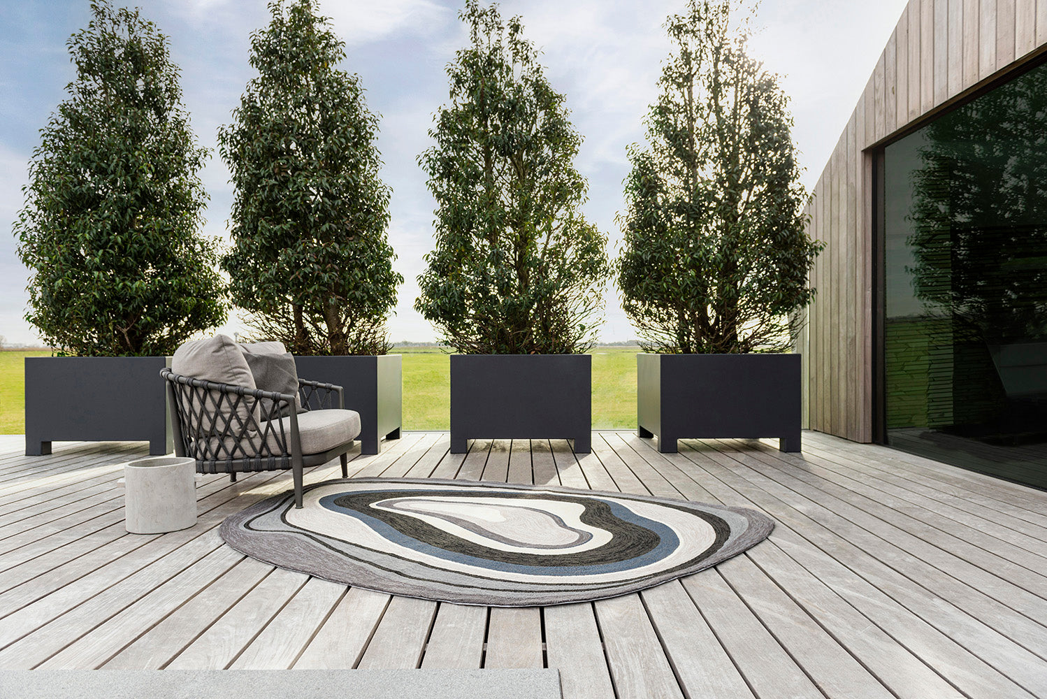 Vacuum with no beater bar/rotating brush. Spot clean with water, with mild detergent. The backing may get soft when the rug is wet, but this common. Air or sun-dry the rug and backing to get it back to normal. When the rug is cleaned or wet it would be good to move it from the area and turn it upside down to dry the backing and the surface underneath as the water would go through the rug. When placed on an uncovered wooden patio deck we advise to remove and/or flip the rug during wet weather since it may cause mould or reaction between the latex and wood alkalis. The rug is water resistant and ideally should be dried upside down. To extend longevity of the rug we advise you to store it away during bad weather and winter months.