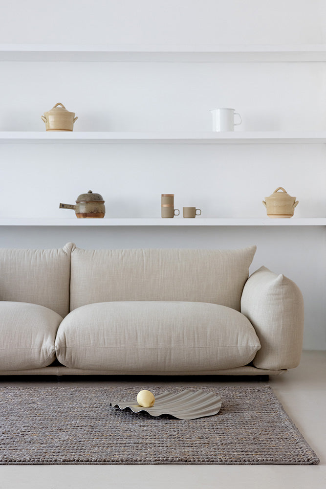 Using the age-old technique Sumak weaving, the artisans made the refined series PLAIT; a double weave made from natural fibers. The back of the rug is made of cotton. The top features braided lines of wool and jute, accented with shiny viscose yarns.