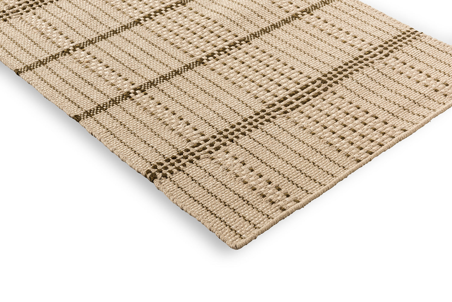 Elevate your outdoor oasis with the timeless elegance of the Zona Stitch rug by Brink & Campman. Crafted with meticulous attention to detail, this flatweave masterpiece redefines relaxation with its tranquil design and natural hues. Woven by skilled artisans, it boasts irregular yarns spun from recycled PET bottles, showcasing the art of upcycling. With its water-resistant and easy-to-clean properties, this reversible rug effortlessly combines sustainability with refined beauty. Available in two captivating colourways – terra and olive – indulge in luxury and sophistication under the open sky.