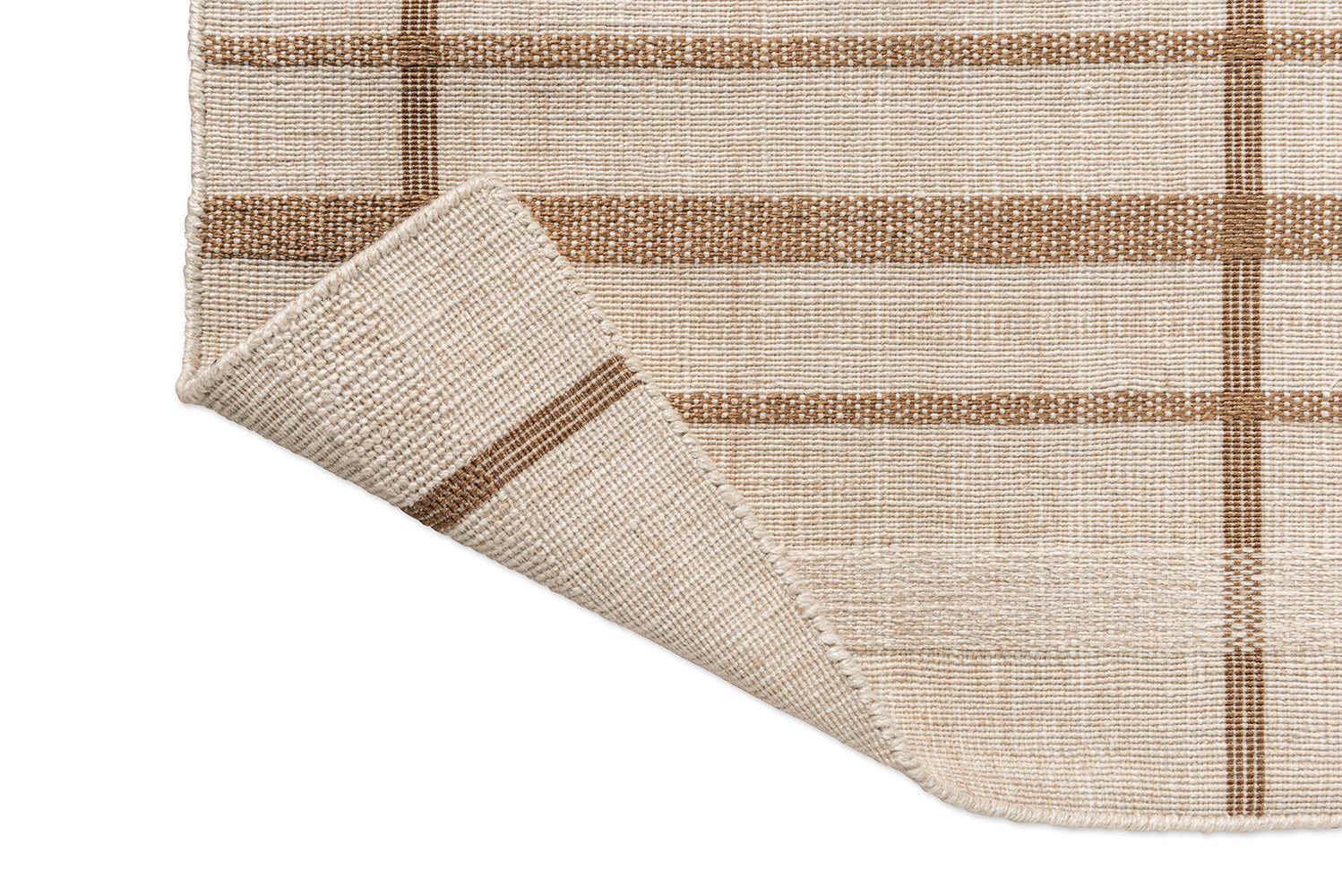 Immerse yourself in the rustic charm of the Zona Line rug by Brink & Campman. Classic stripes meet artisanal craftsmanship in this captivating design, where irregular threads and hand-weaving techniques intertwine seamlessly with recycled PET yarns. Crafted with care, this flatweave masterpiece offers durability and style, enhanced by its water-resistant and easy-to-clean properties. Available in timeless sesame and charcoal colourways, elevate your outdoor space with this timeless and versatile rug.