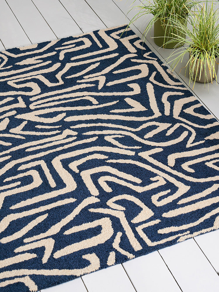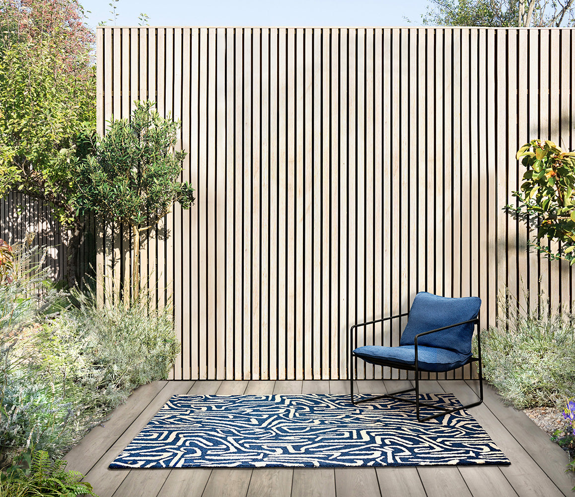 Harlequin believes that our best interiors are created when they reflect who we are. Make a statement, set a mood and turn your patio, deck, or garden into a personalized haven. Each rug is a canvas of colour and creativity, allowing you to express your unique personality and style. The rhythmic beats of our favourite song have inspired this statement geo thata's hand painted in this MELODIC rug, expertly hand-tufted from 100% recycled PET.