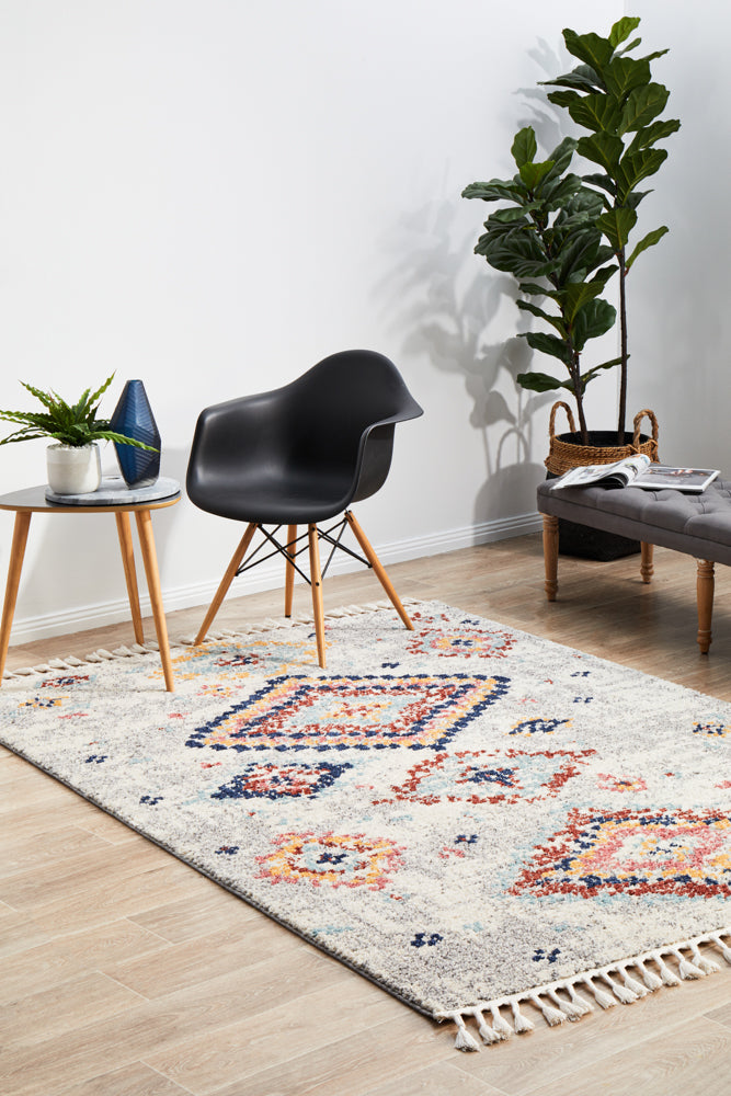 Introducing the Marrakesh 222 Silver 290X200cm rug from Unitex International. This stunning piece from the renowned Marrakesh collection features a unique combination of diamonds and geometrical patterns, adding a touch of elegance to any room. Made of 100% polypropylene and power loomed for durability, this rug is not only stylish but also built to last. Its multicolored design adds a tribal feel, making it a true centerpiece in any space.