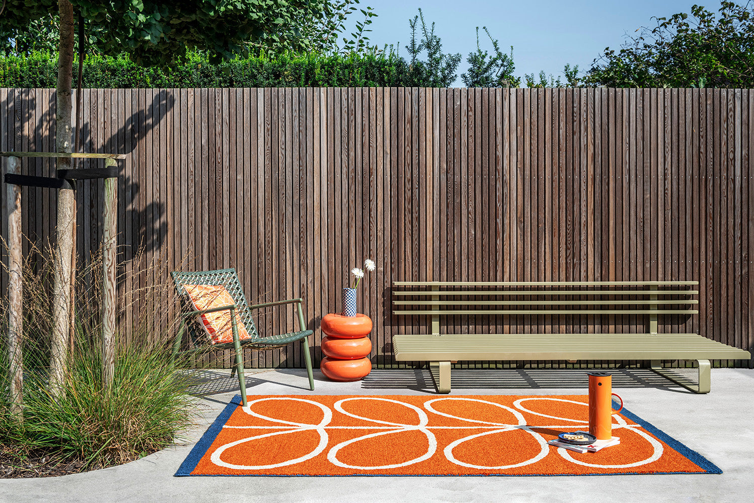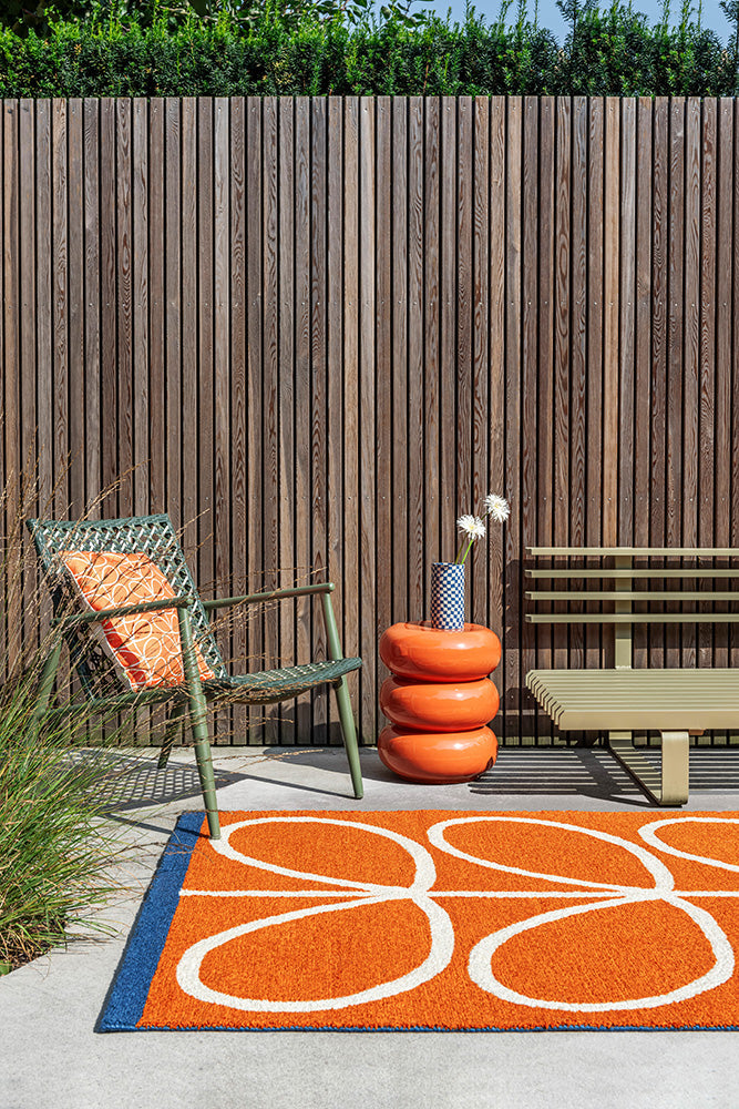 Orla Kiely has a passion for mid-century design. Often perceived as retro, the brand reinvents and aspires to newness with an ever evolving colourpalette to build modern on modernism. Designed to withstand all environments, and perfect for gardens, patios, kitchens and dining areas, these outdoor rugs add a splash of print and colour to your outdoor area. Expertly hand-tufted from 100% recycled PET, it combines sustainability with style.