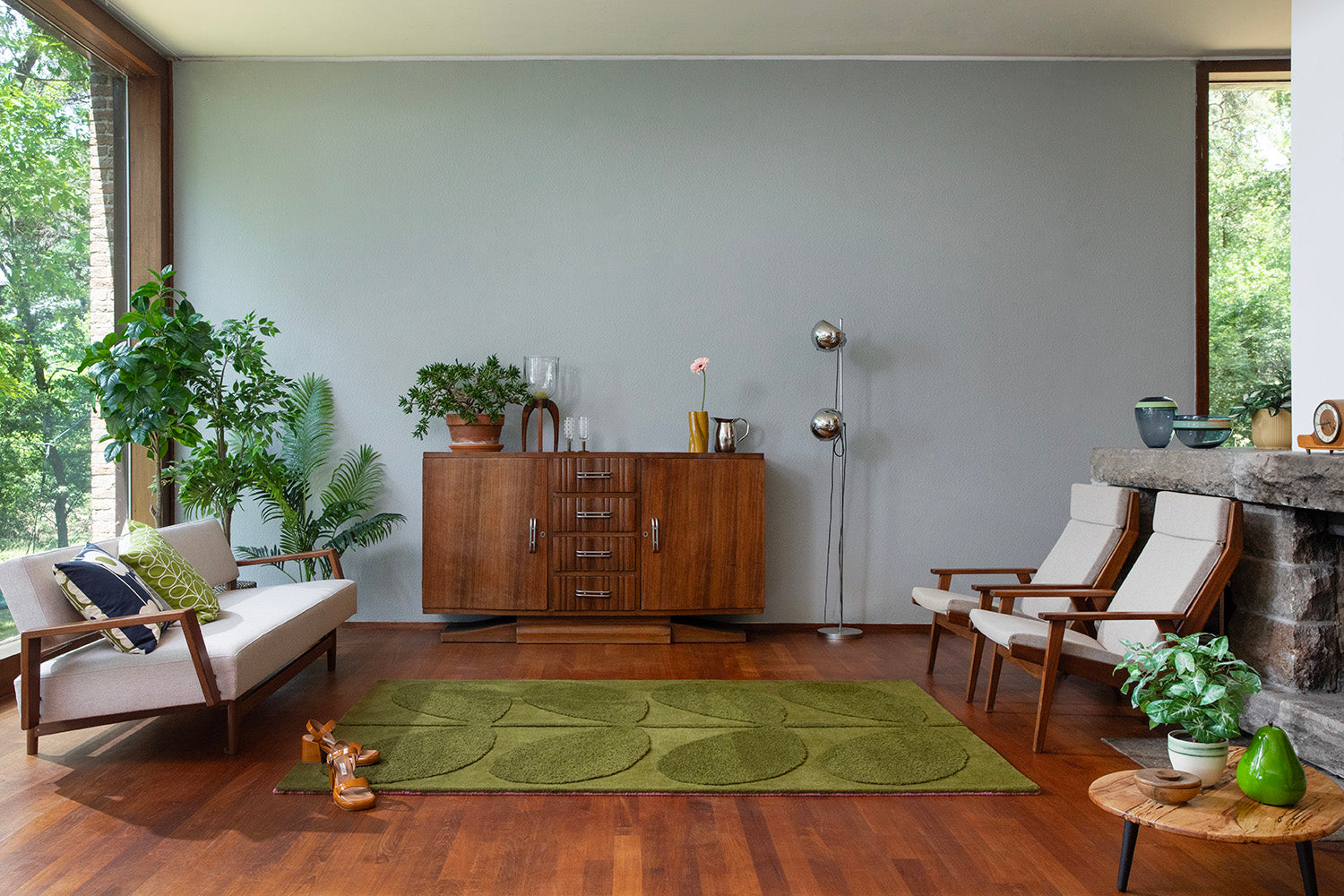 Orla Kiely's Solid Stem Fern rug is a compelling reflection of her unwavering passion for mid-century design. This rug magnifies her classic floral motif with intricate texturing in a large scale, imbuing it with a modern twist. The vibrant olive green backdrop is beautifully complemented by a subtle pink border underlining the rug's edge. This creative interplay of colors showcases Kiely's journey to contemporize her timeless patterns. Hand-tufted in India from 100% pure new wool, the Solid Stem Fern rug exudes an air of mid-century elegance and a touch of modernism, inviting you to embrace the past while stepping into the future of interior design.