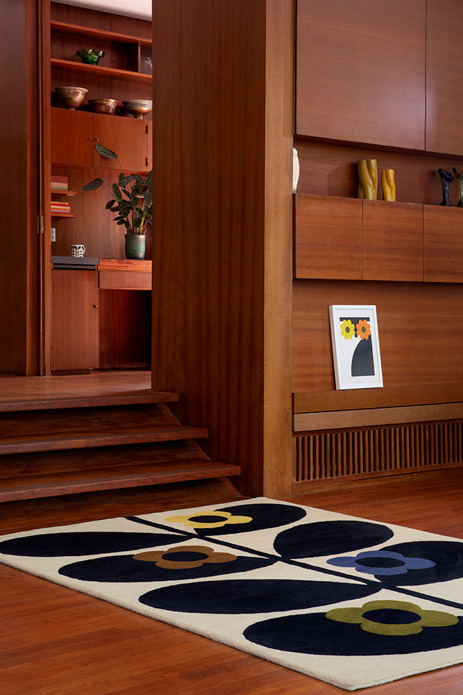 The Wild Rose Fawn rug by Orla Kiely beautifully encapsulates her deep-rooted passion for mid-century design. This piece showcases her signature floral pattern, reimagined in a large, modern design, with delicate coloured flowers artfully scattered on its surface. As a testament to Orla Kiely's artistry, this rug deftly navigates the colour palette evolution of mid-century design and translates it into a harmonious modern aesthetic. Hand-tufted in India from 100% pure new wool, the Wild Rose Fawn rug offers both vintage charm and a contemporary elegance, making it the perfect addition to any space seeking to blend nostalgia with a modern touch.