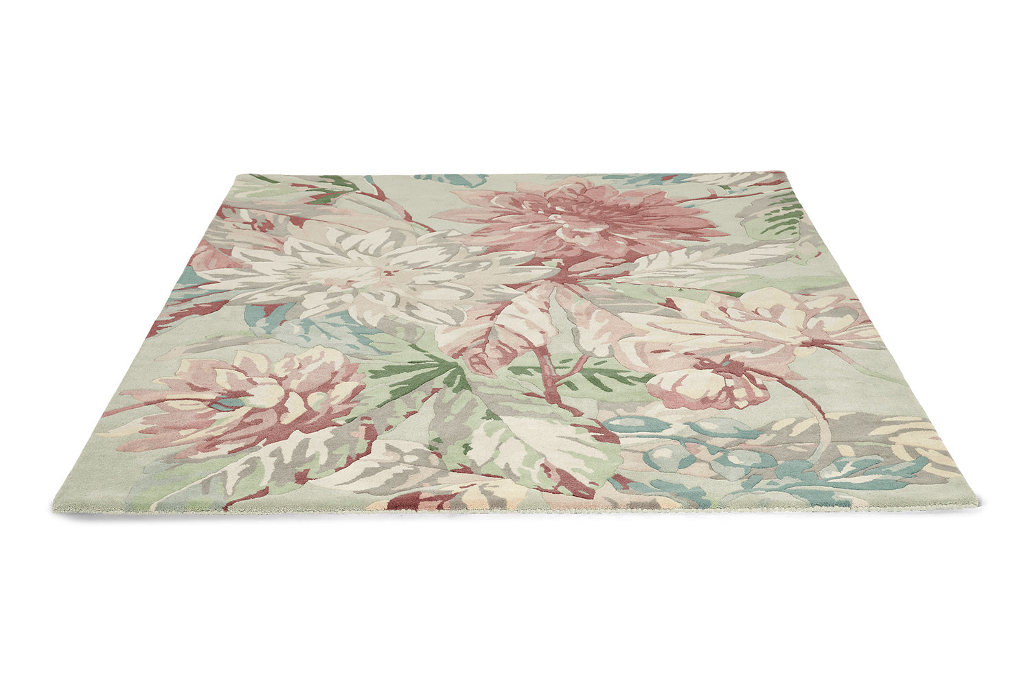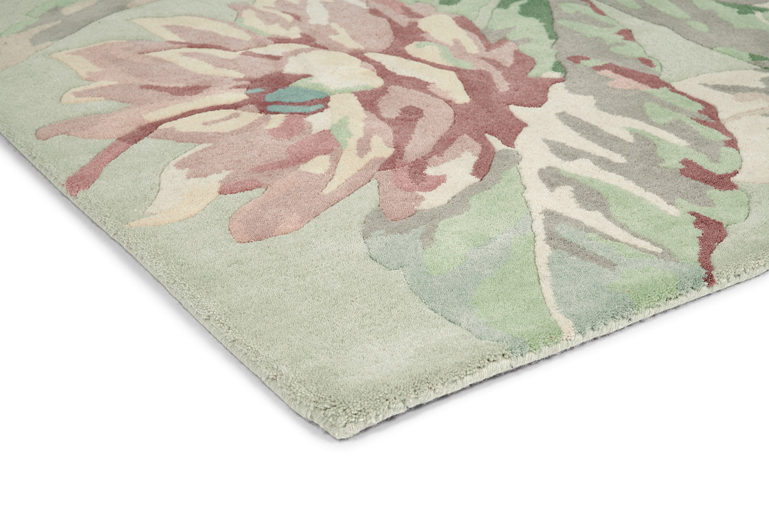 Beautifully bold dahlia blooms nestle amongst generous horse chestnut leaves interspersed with rose hip berries in this vintage classic. Through the Sanderson collection, the design was brought to life and widely utilize to bring forth this contemporary rug. Handtufted in India using an 100% pure new wool pile, boast and be ready to make a statement with these bold leafy rugs. One can be assured that it will be a vibrant addition to your interior space.