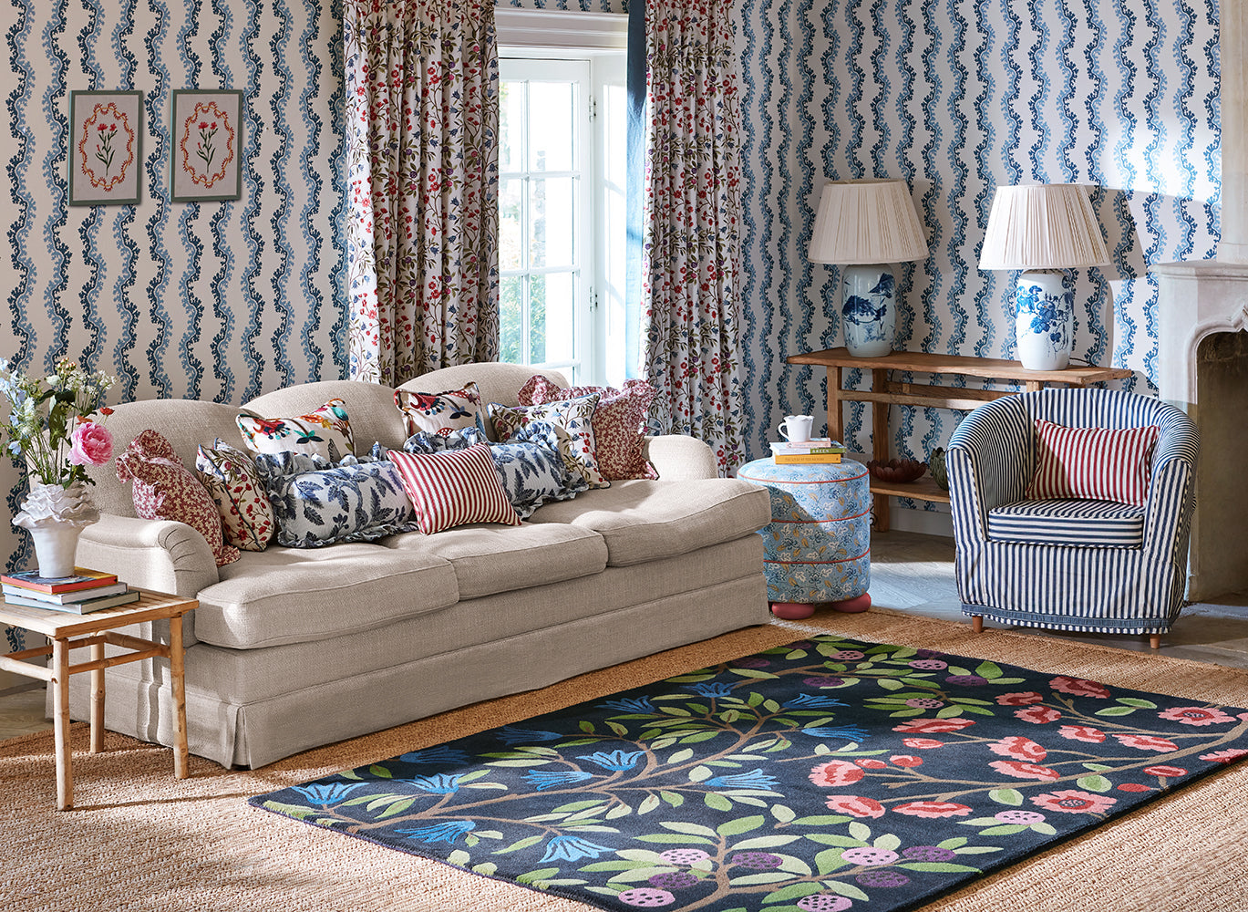 Originally an exquisite embroidery, intricate blooms ofwild berries, sloes and blossom trail across this woodlandinspired design. A forager's harvest, this hand tufted rugshows the full to bursting fruits and flowers in an image ofmidnight against the indigo background.