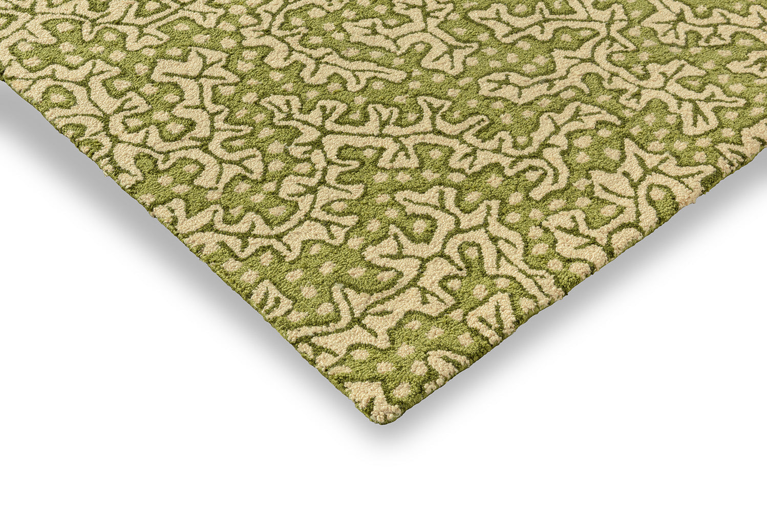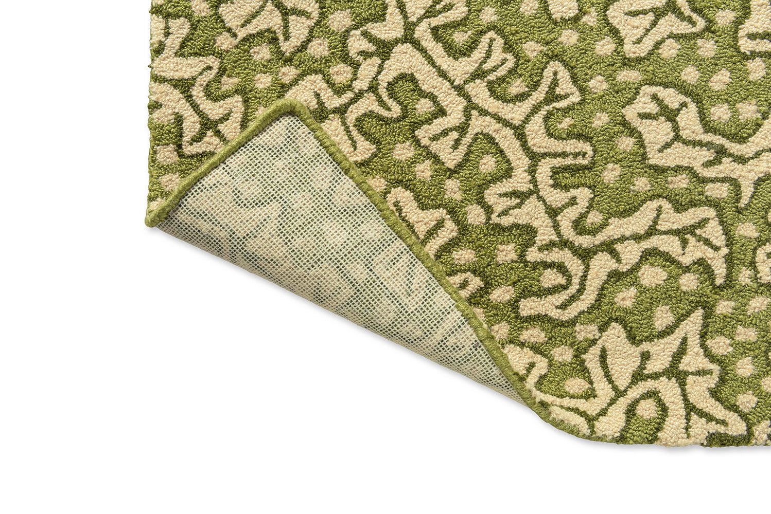 Like the cross section of a truffle, this archive design is made from lines of pin dots on a spotted ground. A lovely mix of texture and tone, use as a coordinate to the entire Sanderson range. Expertly hand-tufted from 100% recycled PET, it combines sustainability with style.