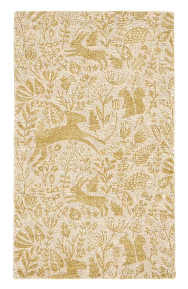 Folksy, woodland creatures are scattered across this print. Featuring deer, squirrels, hedgehogs and hares, these playful prints are perfect for kids' rooms coming in a range of smaller sizes. Carefully hand loomed in India using pure new wool, creating comfort and depth with its dense, soft pile. Using a new technique specifically developed for Scion, designs are screen-printed on to 100% pure wool quality, hand-loomed rugs.