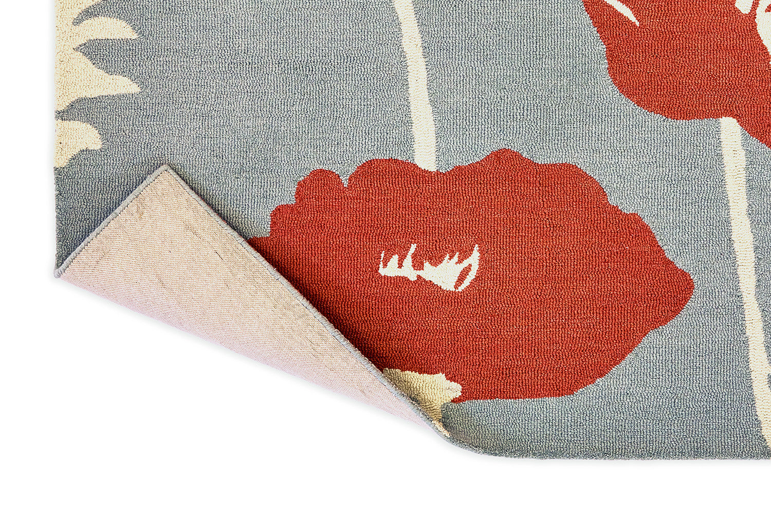 Get your floral fix with the vibrant Poppy Pop rug in Sage by Scion. Hand tufted with care in India, this breathtaking design features a rich red poppy motif, cream stems and a muted sage base. Enjoy added comfort and luxurious texture with a dense 14mm pile which comprises of pure new wool.