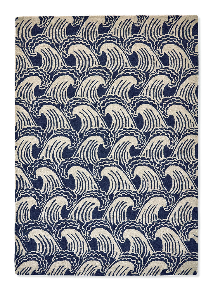 Perfect for design lovers, the Ride the Wave rug in Denim by Scion is adorned with stylized waves. Hand tufted in India from pure new wool, this piece has a dense, 14mm pile making it luxuriously soft and comfortable. Pair this rug with gold accents and a pop of colour to make the ultimate statement.