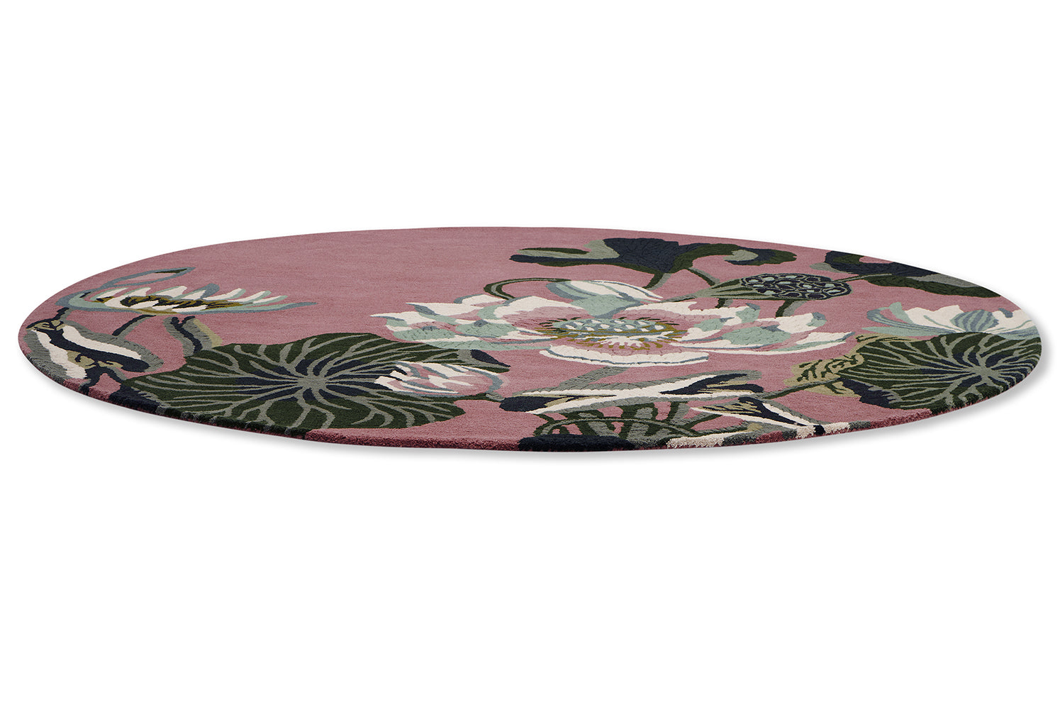 Crafted from pure wool the Wedgwood Waterlily provides a dusty rose colour background with eye-catching floral designs mixed with tones of vibrant dark greens. This rug adds dimension and features colours suited for all living spaces.