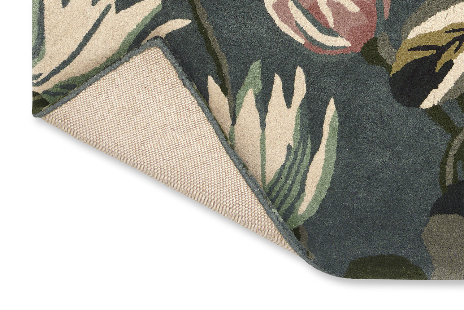 Crafted from pure wool the Wedgwood Waterlily provides a midnight blue colour background with eye-catching floral designs mixed with tones of vibrant dark greens. This rug adds dimension and features colours suited for all living spaces.