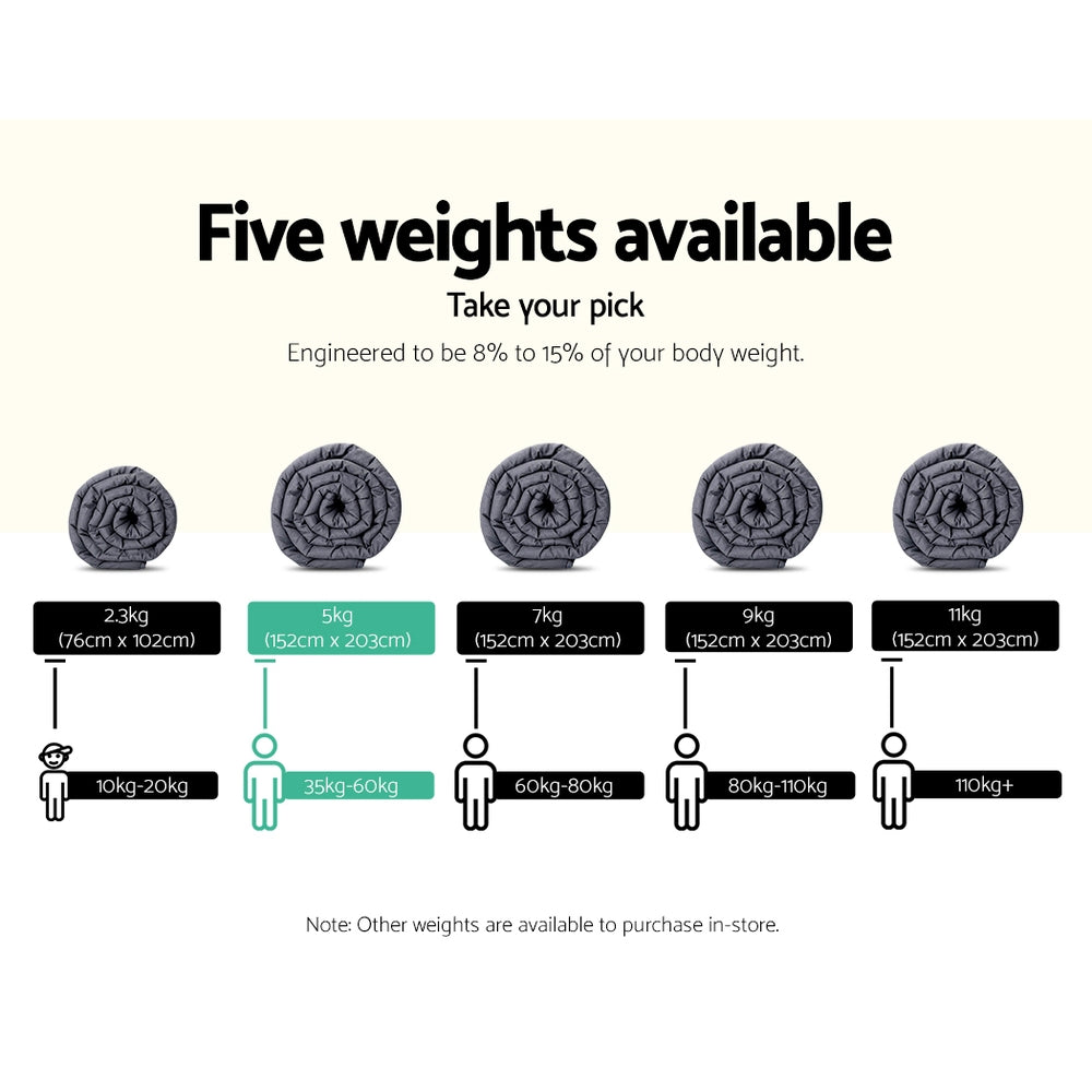 Weighted Blanket Adult 5KG Heavy Gravity Blankets Microfibre Cover Calming Relax Anxiety Relief Grey