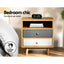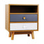 Made from a combination of particle and MDF board with solid rubber wood legs, the tri-tone Bertha Bedside Drawers is the perfect choice to grace any bedroom, study or any other space in a discerning home or establishment. The splayed legs add a unique stand to this very able Bedside Drawers that also comes with round handles and smooth anti-rust drawer sliders for hassle-free use. Not least, ample storage space is found with one open shelf and two drawers for all your bedside or personal essentials.