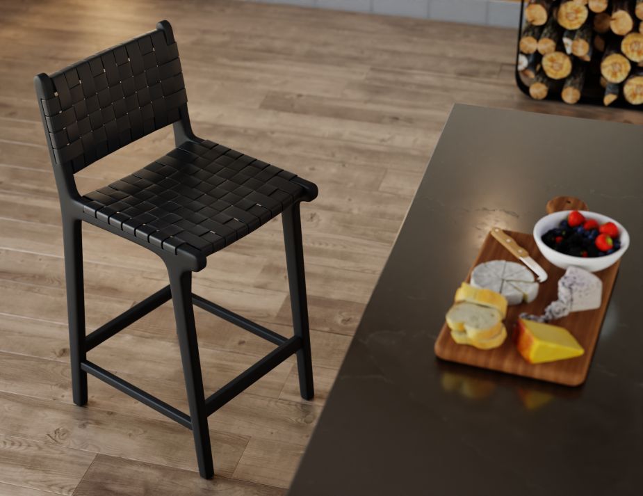 Brooklyn Bar Stool - Woven Black Seat / Black Frame