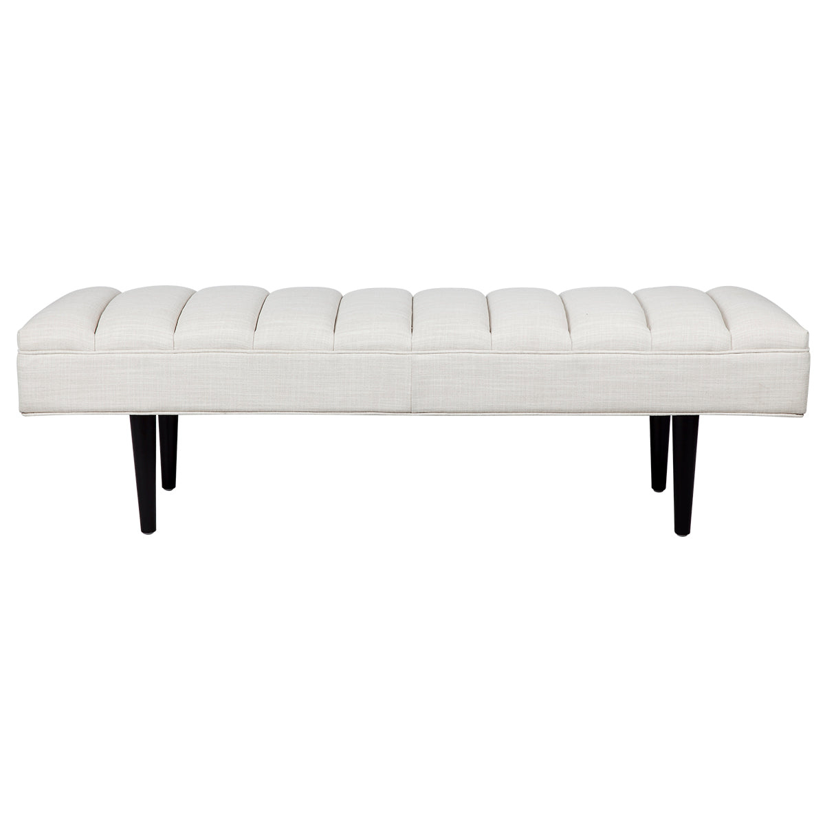 A contemporary take on a classic silhouette, the chic Central Park panelled ottoman adds instant style with its panelled detailing and piping finish with slender black timber legs supporting its tufted frame. Classic contemporary in design, the Central Park panelled bench ottoman, upholstered in a gorgeously textured natural linen blend fabric, is the perfect accent piece for an elegantly styled bedroom, entry or additional living room seating. A beautiful complement to any interior.