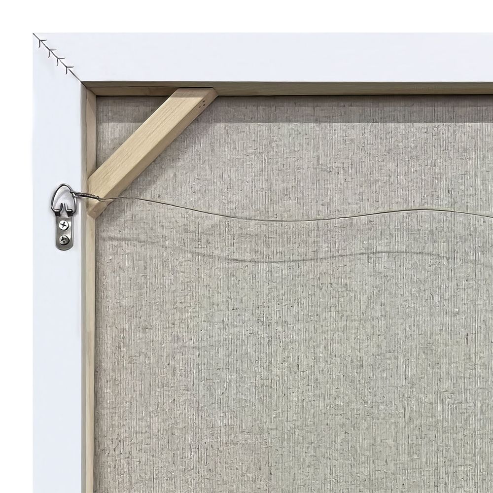Measuring at 100cm W x 4cm D x 100cm H for the frame and 95cm W x 95cm H for the painting, this piece is the perfect size to make a statement in any room. The white shadow box frame adds a touch of elegance, while the D-ring and string hanging method makes it easy to display on your wall.