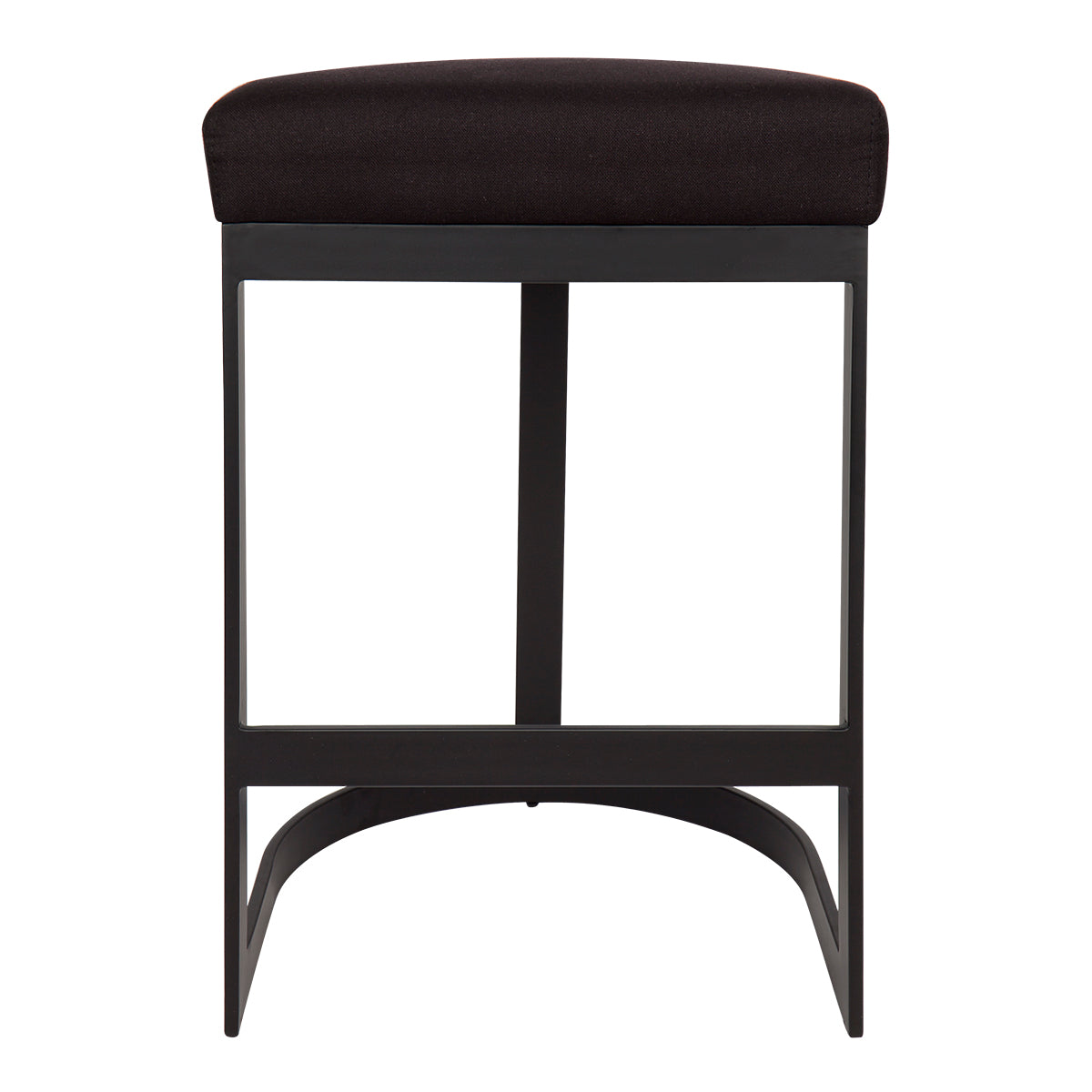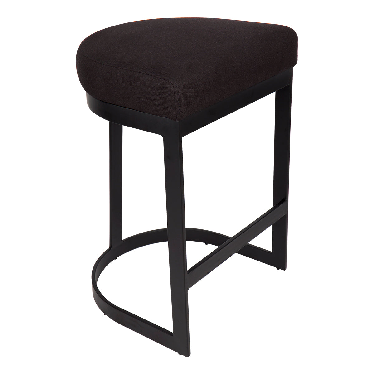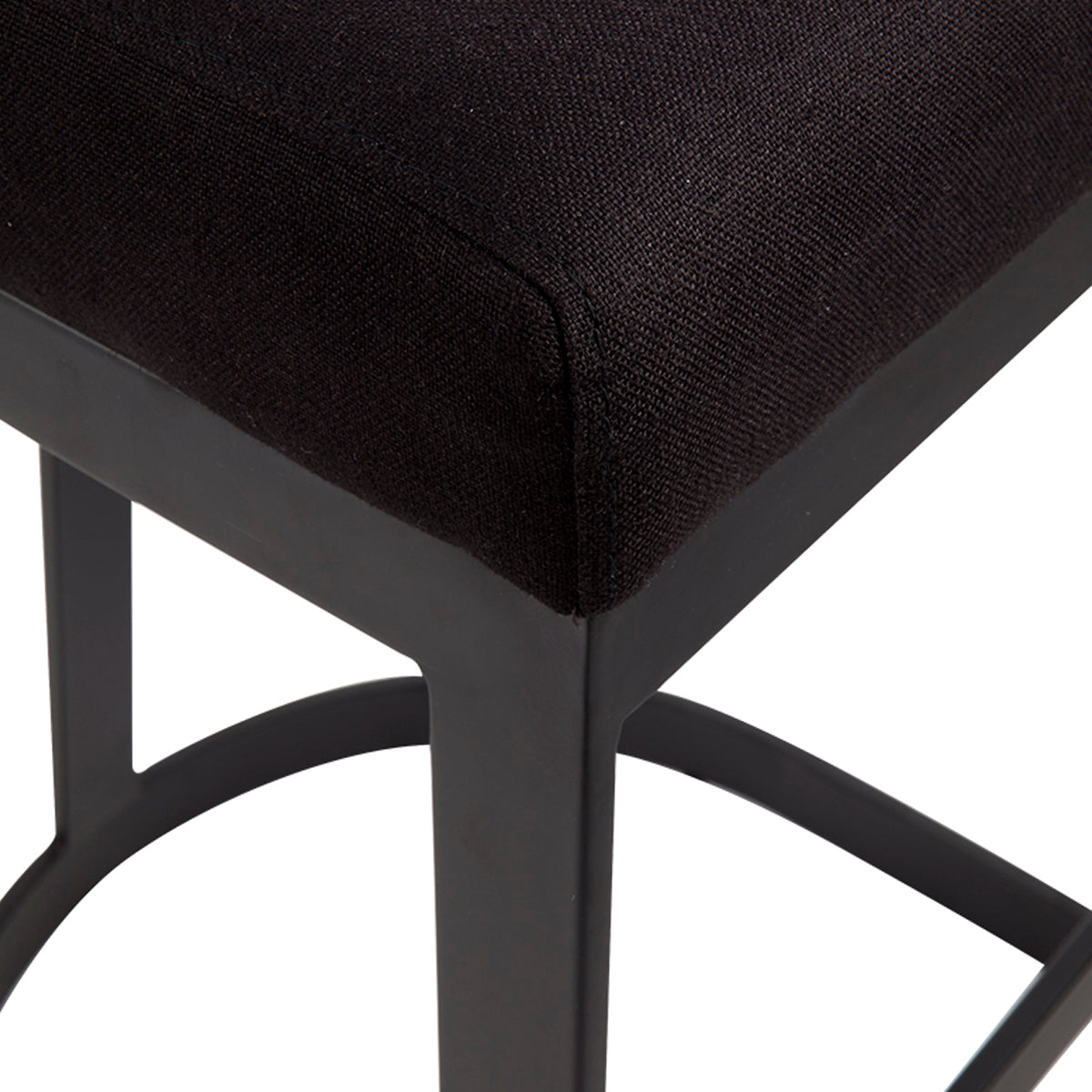 Black linen upholstered kitchen stool with black coloured steel frame legs