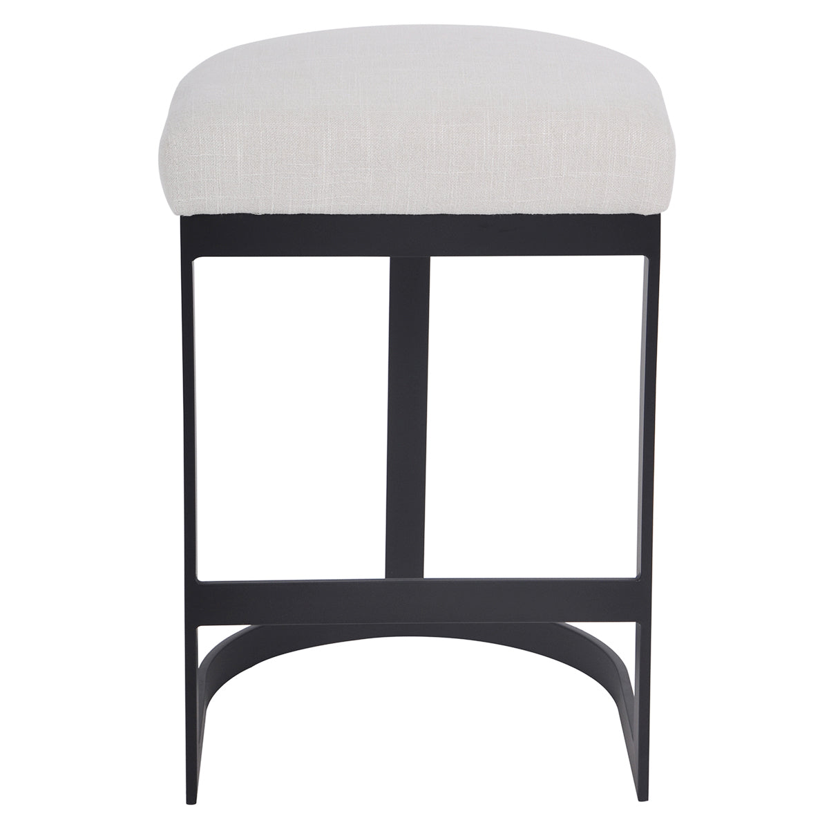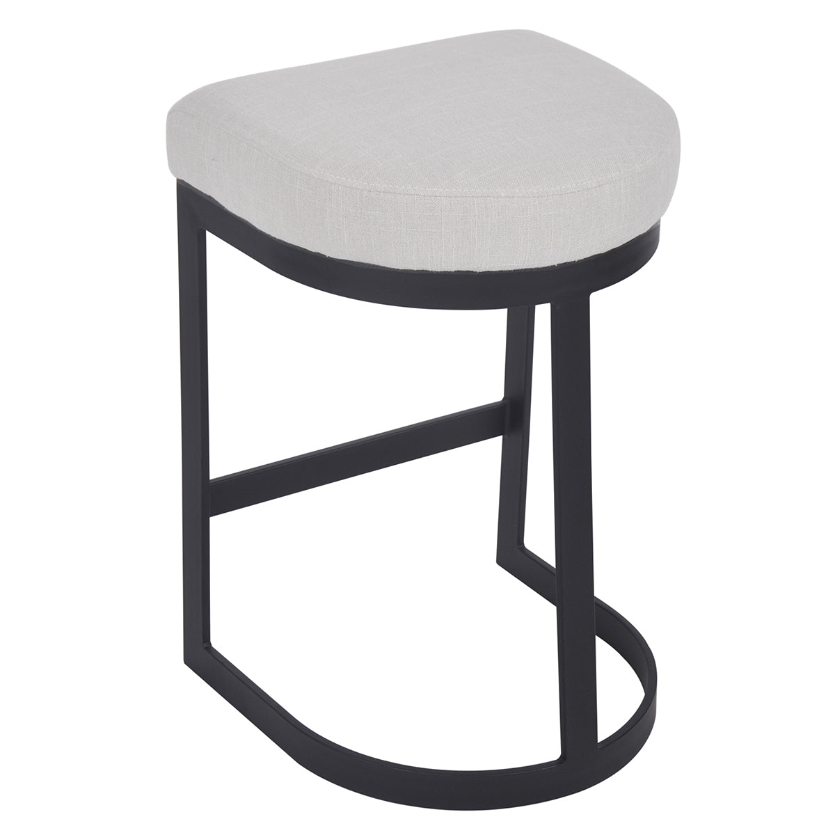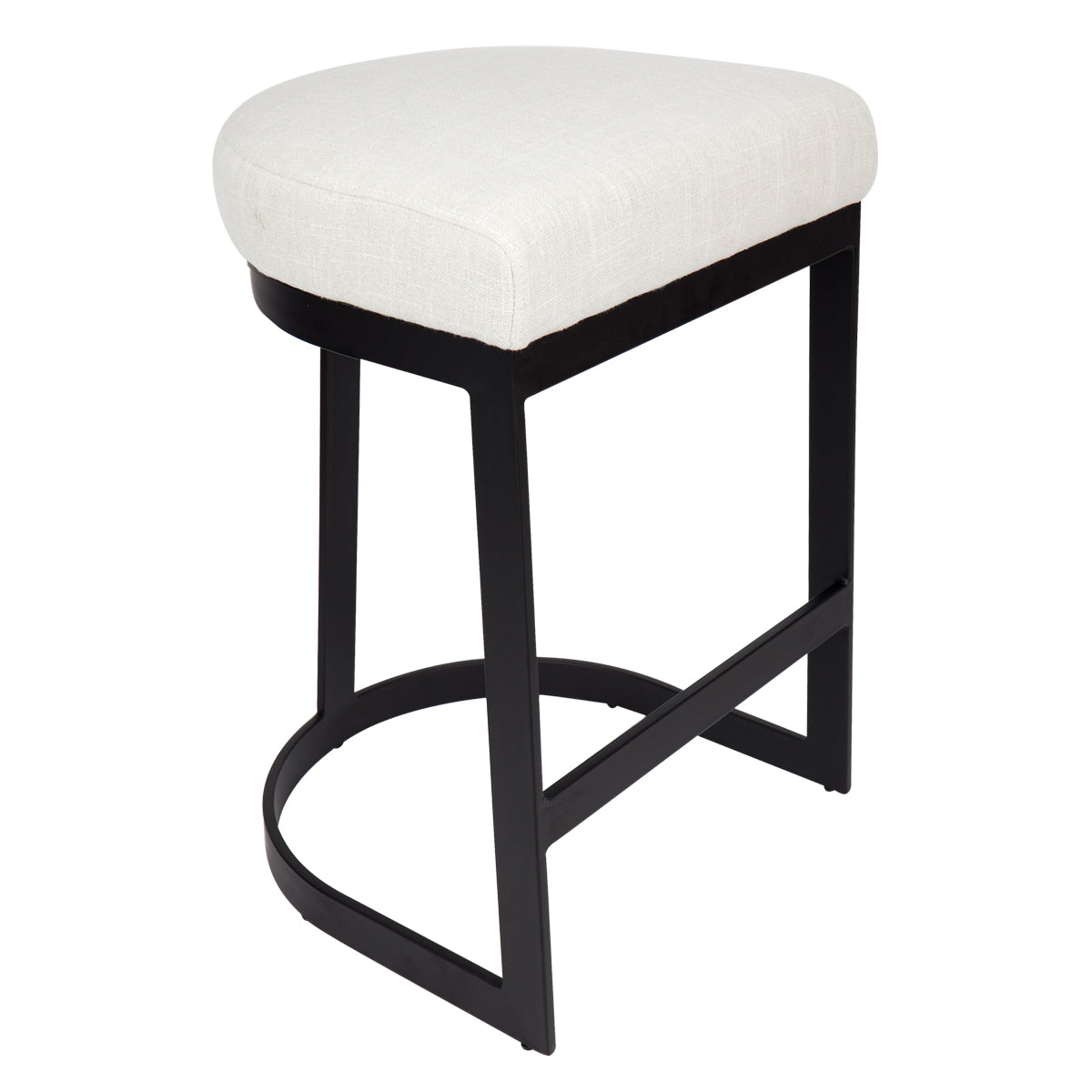 Natural linen upholstered kitchen stool with black coloured steel frame legs